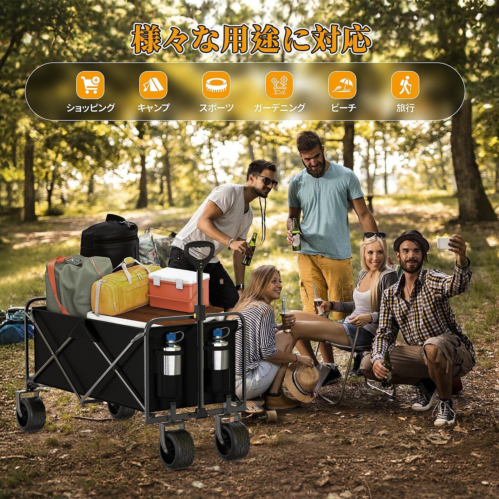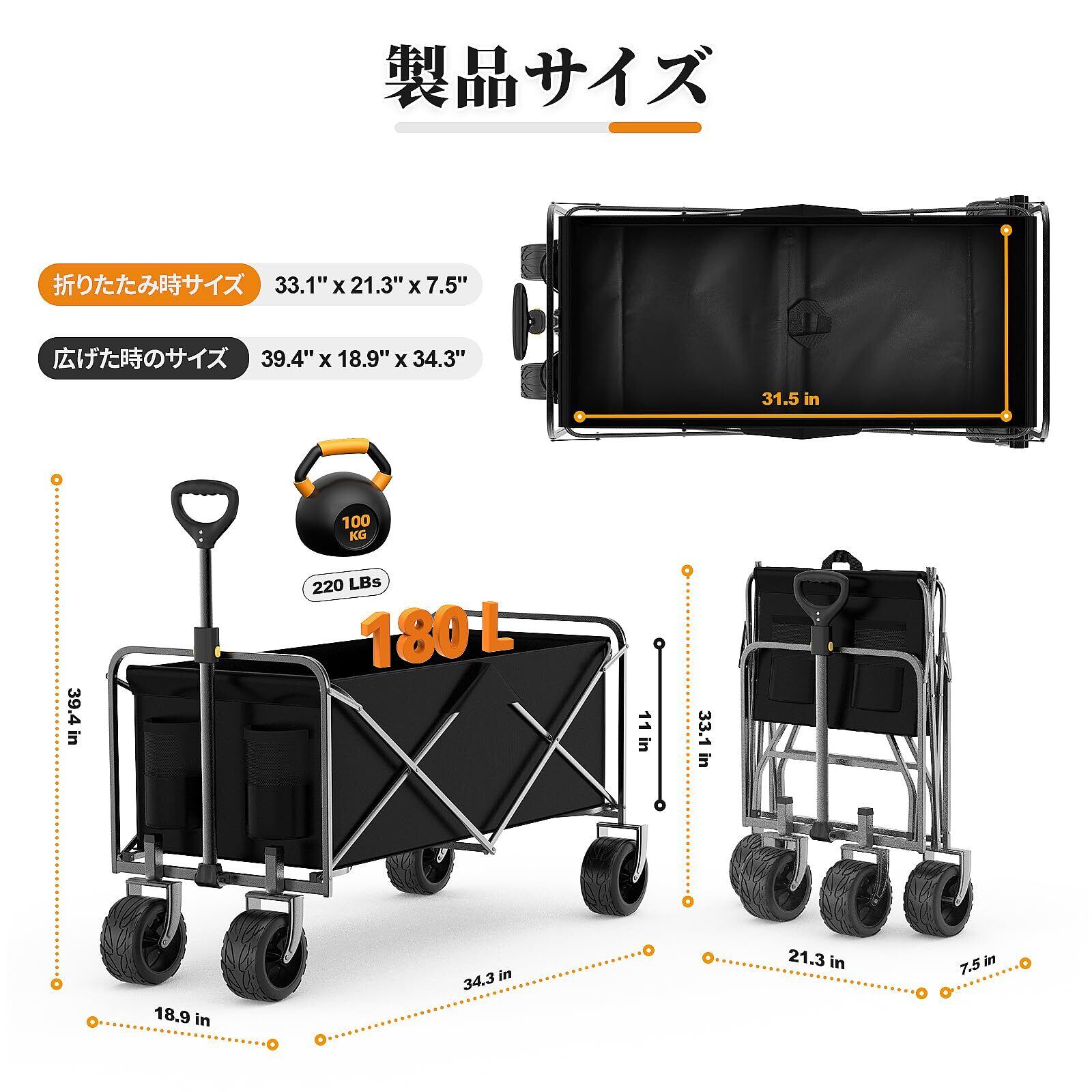 【数量限定】MAVGV 折りたたみ式ワゴン - ヘビーデューティ 220lbs(約100kg)耐荷重、全地形対応ビーチホイール&ドリンクホルダー付き ガーデン/キャンプ/ビーチ用(ブラック)