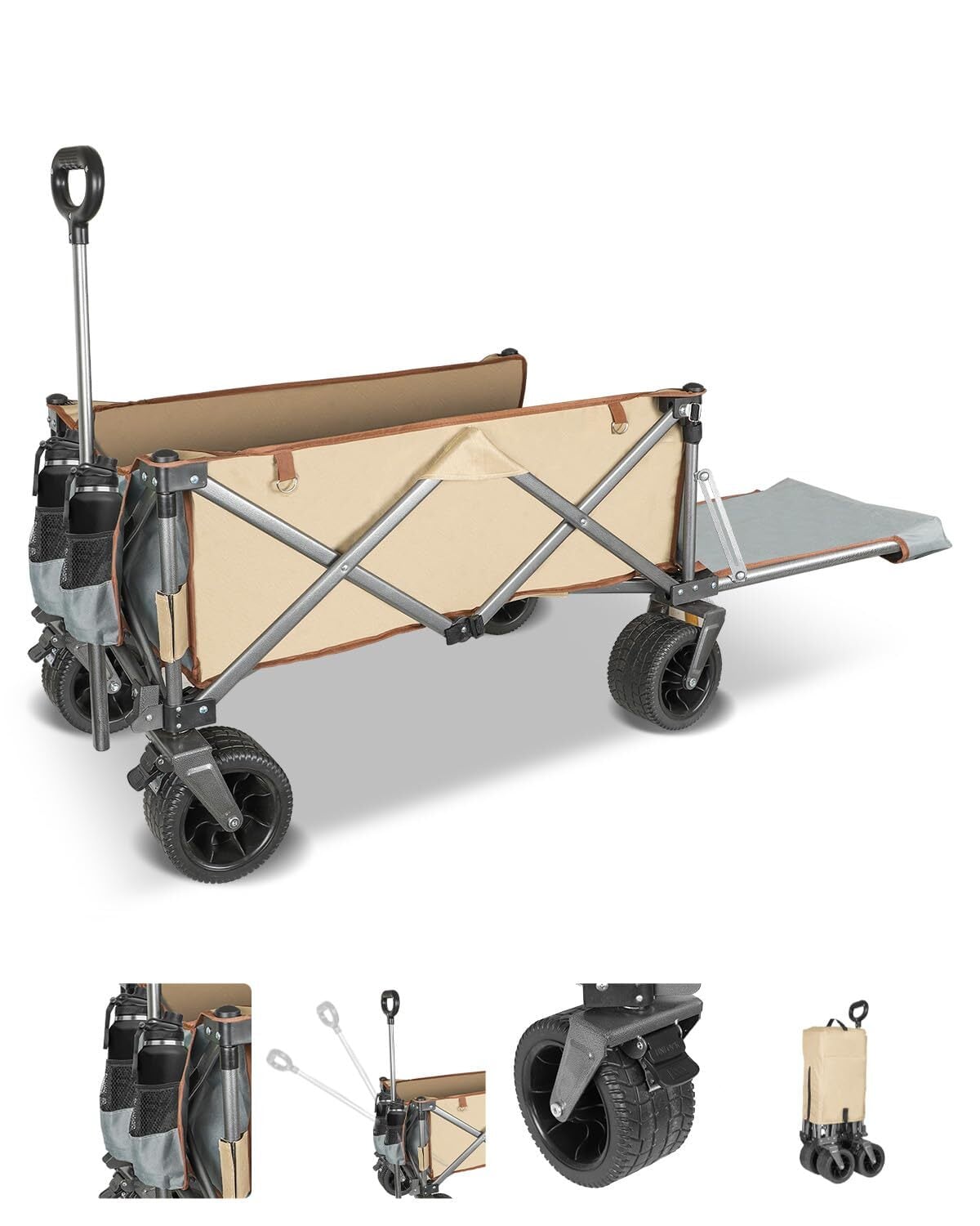 【驚くほどコンパクト収納&幅広い用途】大型タイヤの同容量品と比べて収納の体積が30%ほど小さいキャンプカートです。収納時の高さがわずか54cmで小型野球バット1本の長さに相当し、驚くほどコンパクトで場所を取りません。キャンプ、釣りなどに幅広く使用できます。 、ビーチ、公園、バーベキュー、ショッピング、荷物の受け取りなど。