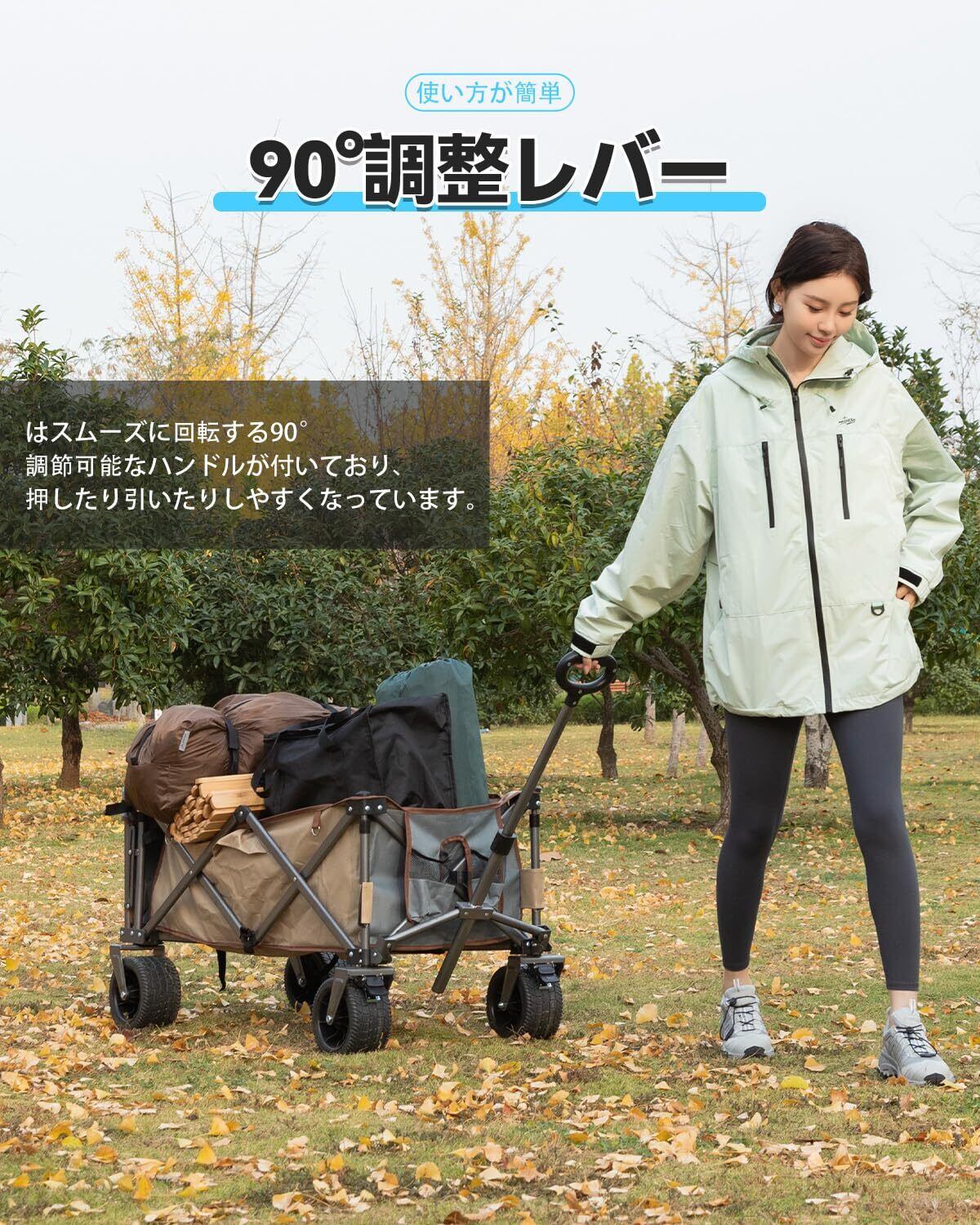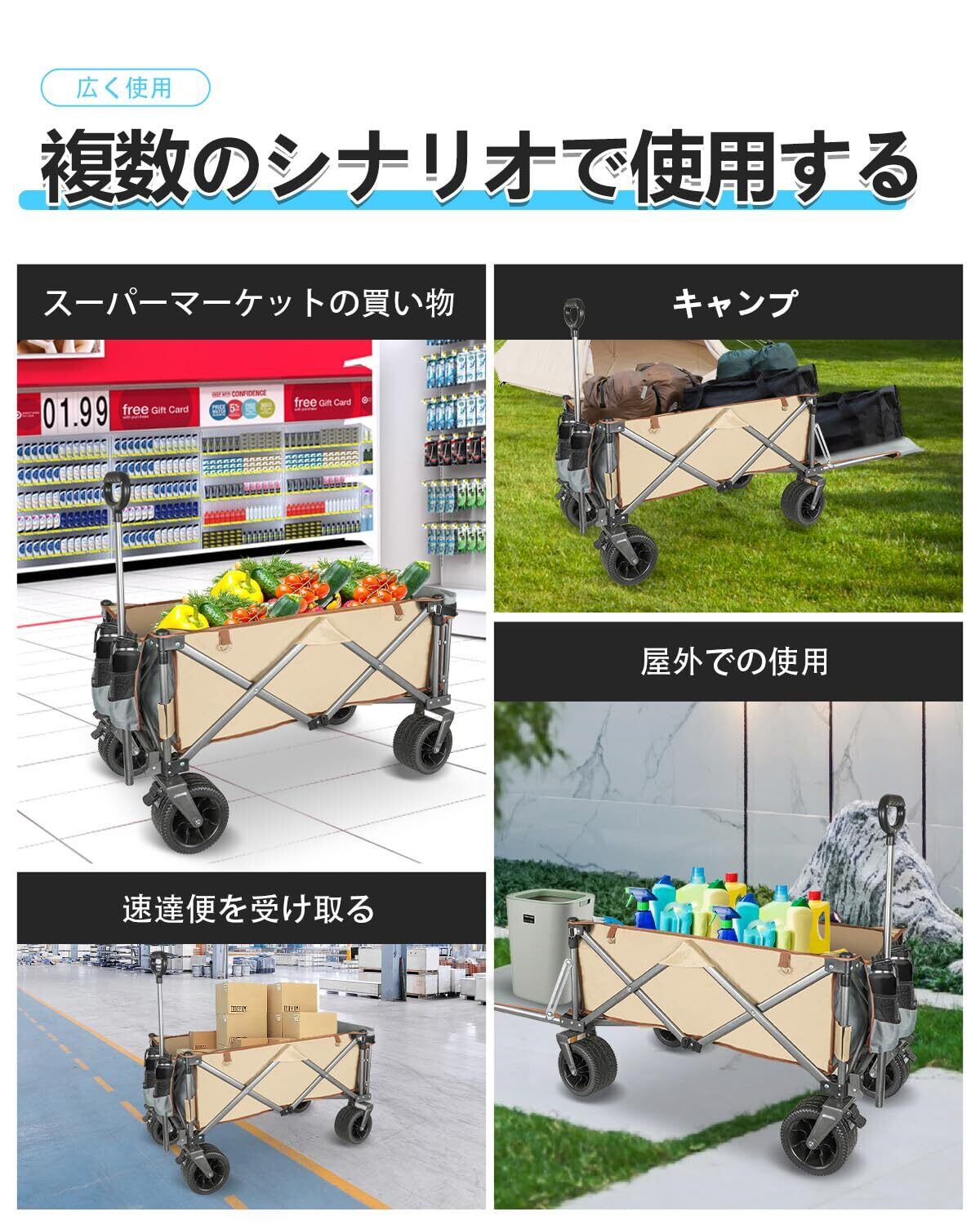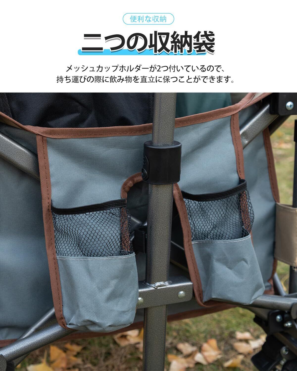 【二つの収納袋&調節可能なハンドル】キャリーワゴン メッシュカップホルダーが2つ付いているので、持ち運びの際に飲み物を直立に保つことができます、スタイリッシュな見た目で使用いただけます。この折りたたみ式ワゴンカートのハンドルの長さは65cmから100cmまで延長できます。 角度も必要に応じてスムーズに回転できます。 ハンドルはジョイントで固定されるので、落下したりカートが暴走する心配がありません。