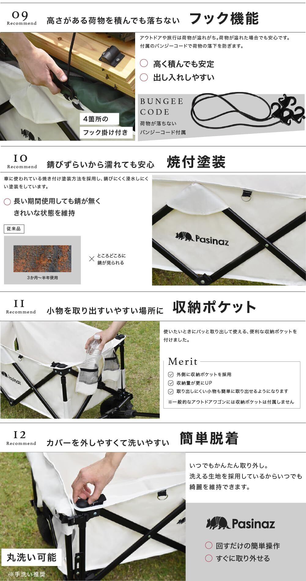 Pasinaz 2023年 NEWモデル アウトドアワゴン キャリーワゴン 耐荷重180kg 大容量 211L キャリーカート キャンプワゴン 折りたたみ 荷室拡張 4輪 伸縮ハンドル 頑丈タフ ワイドタイヤ タイヤロック 軽量 コンパクト 自立 アウトドアキャリー アウトドア キャンプ 大型 おしゃれ (ブラック)