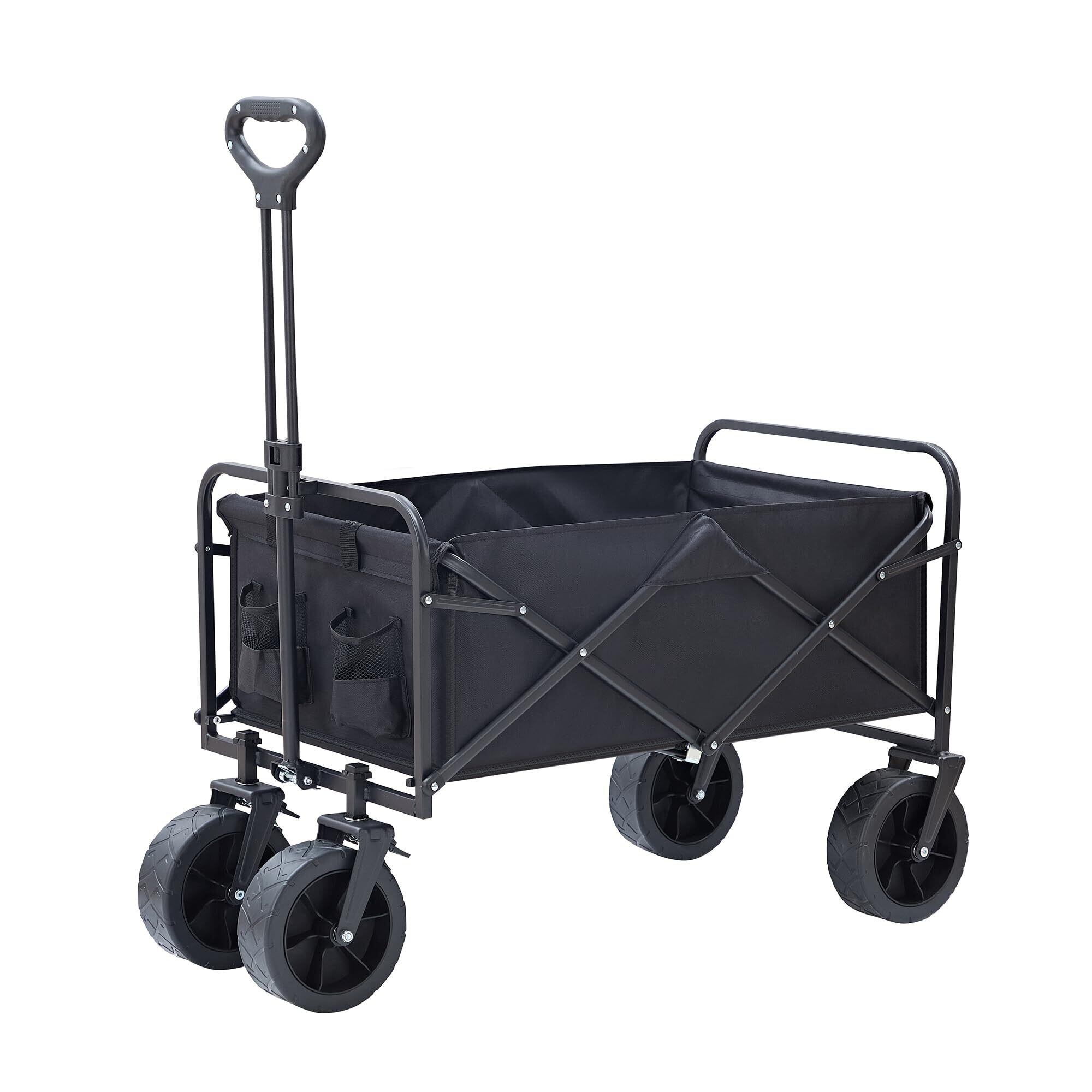 VECELO キャリーワゴン 折りたたみ式キャリーカート アウトドアワゴン キャンプカート 大型タイヤ ブレーキ付き 大容量 110L 耐荷重100KG 4輪 アウトドア収納 持ち運び便利 BBQ 釣り キャンプ