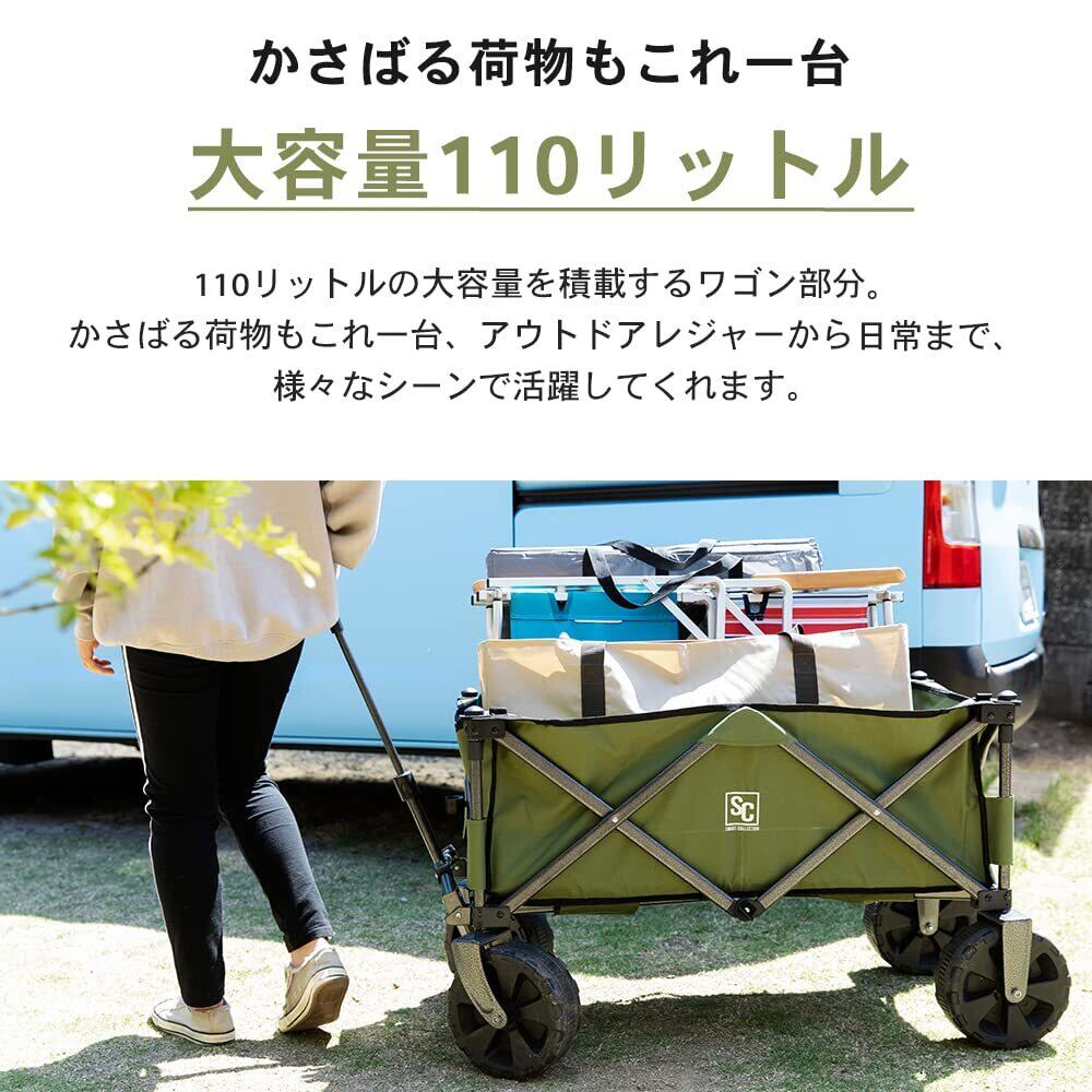 アイリスプラザ キャリーワゴン 大型タイヤ 自立収納 コンパクト 耐荷重110kg ワンタッチ収束式 大容量 折り畳み アウトドアワゴン キャリーカート キャンプカート 軽量 4輪 特大 タイヤ キャンプ レジャー