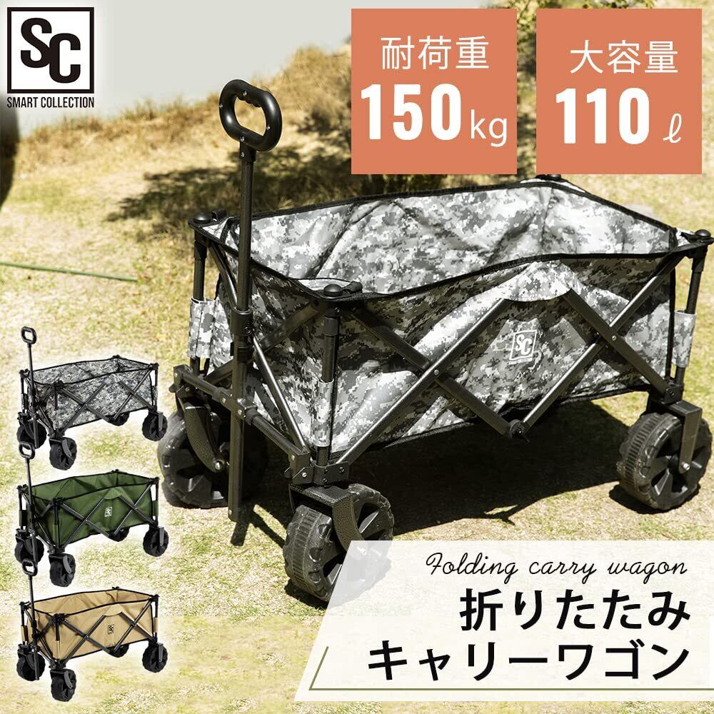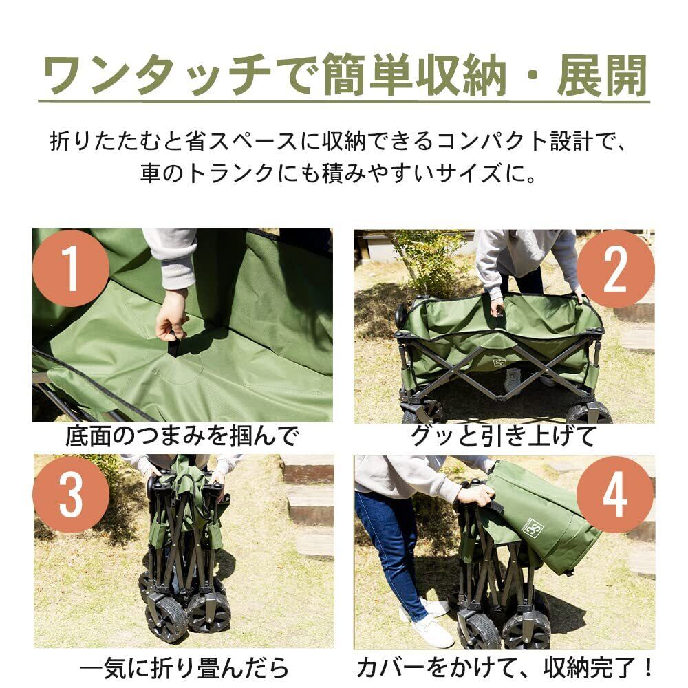【数量限定】アイリスプラザ キャリーワゴン 大型タイヤ 自立収納 コンパクト 耐荷重110kg ワンタッチ収束式 大容量 折り畳み アウトドアワゴン キャリーカート キャンプカート 軽量 4輪 特大 タイヤ キャンプ レジャー | paghag