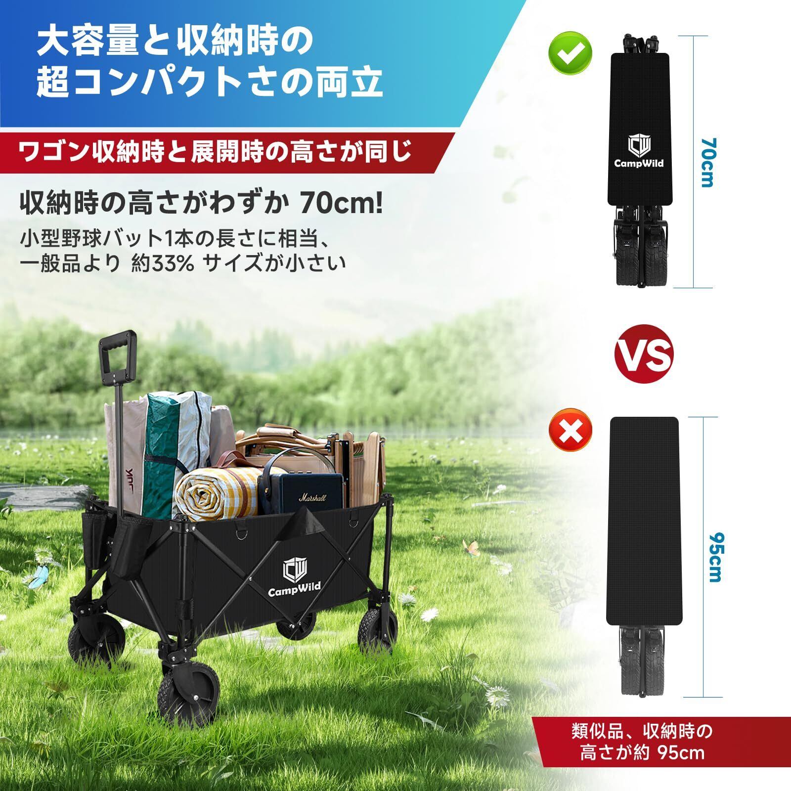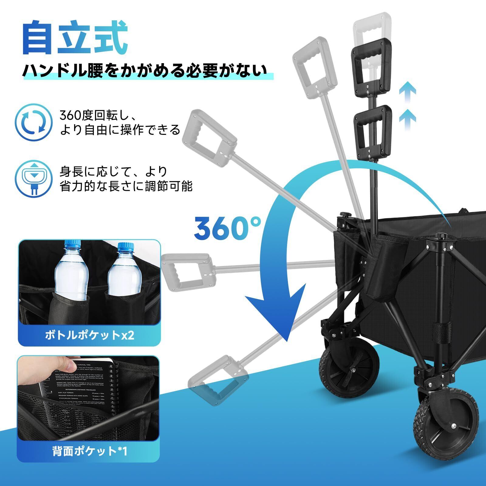 優れた素材と先進技術の融合: 高強度の炭素鋼と最新技術が結集。驚きの耐久性が、通常のキャリーカートを凌駕します。変形や損傷に強く、軽量かつコンパクトなデザインで、快適なアウトドア体験を提供。これまでにない高品質な素材が、お客様の期待を超える耐久性をお約束します。