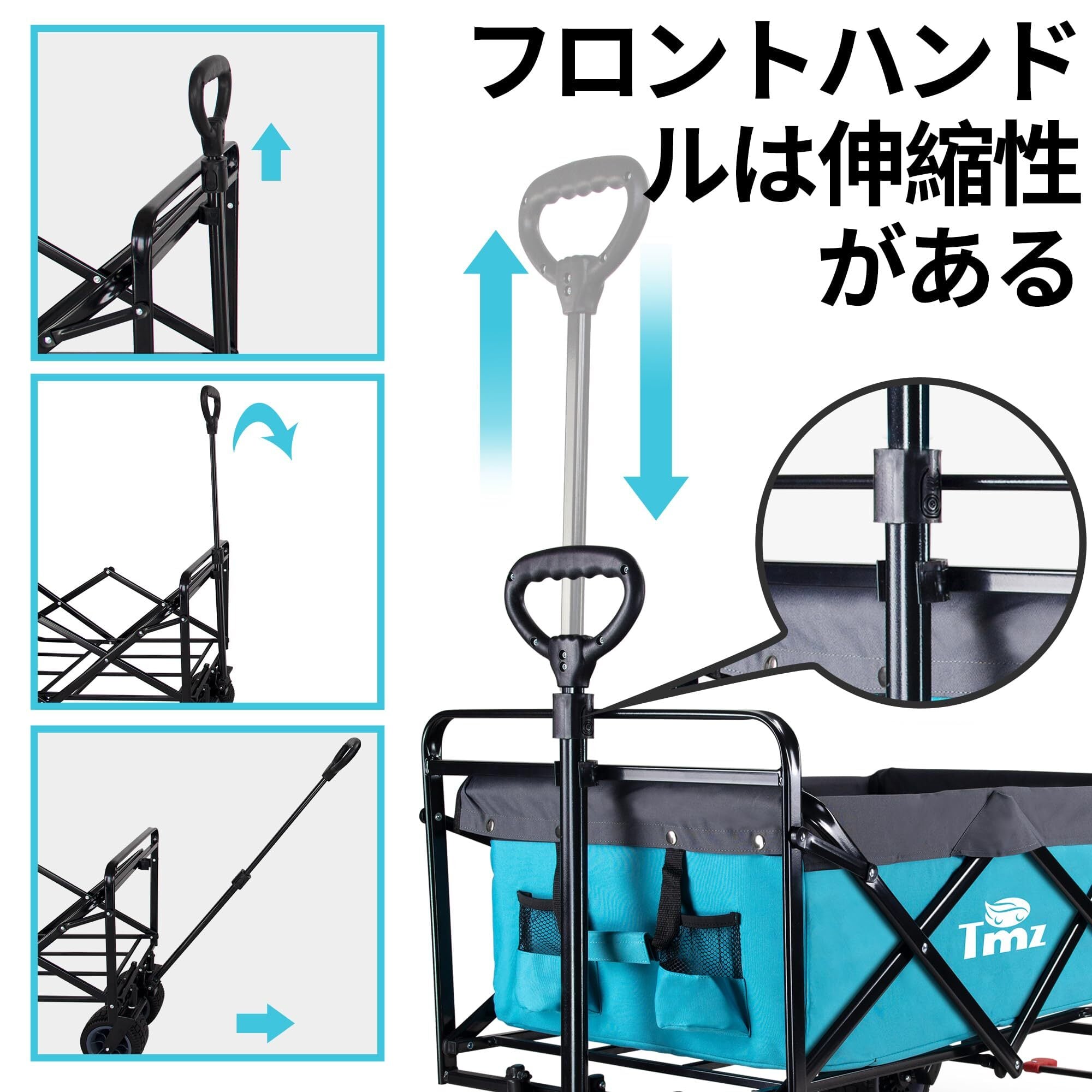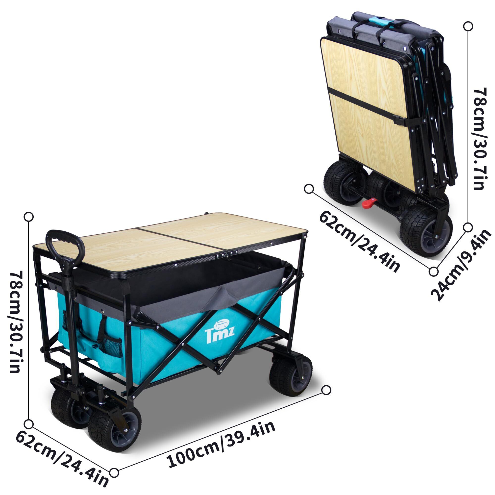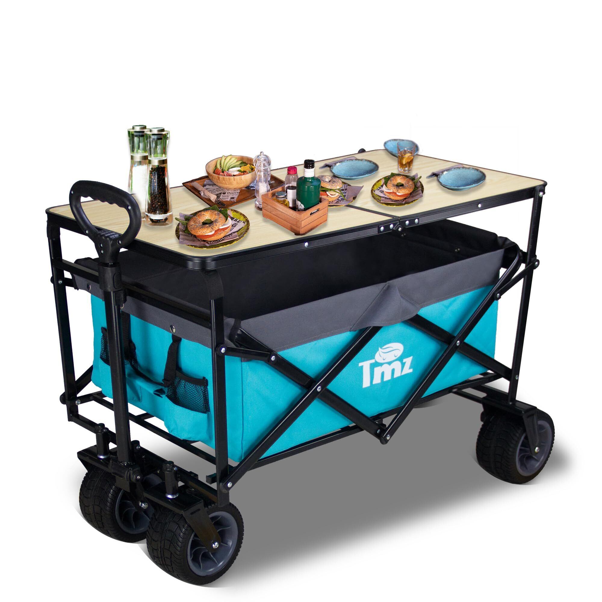 【2022最新】TMZ折りたたみカートアウトドアキャンプ移動テーブル大容量高荷重120 kgビーチスーパーショッピングBBQに適した全地形ブレーキタイヤ(スカイブルー/グレー)