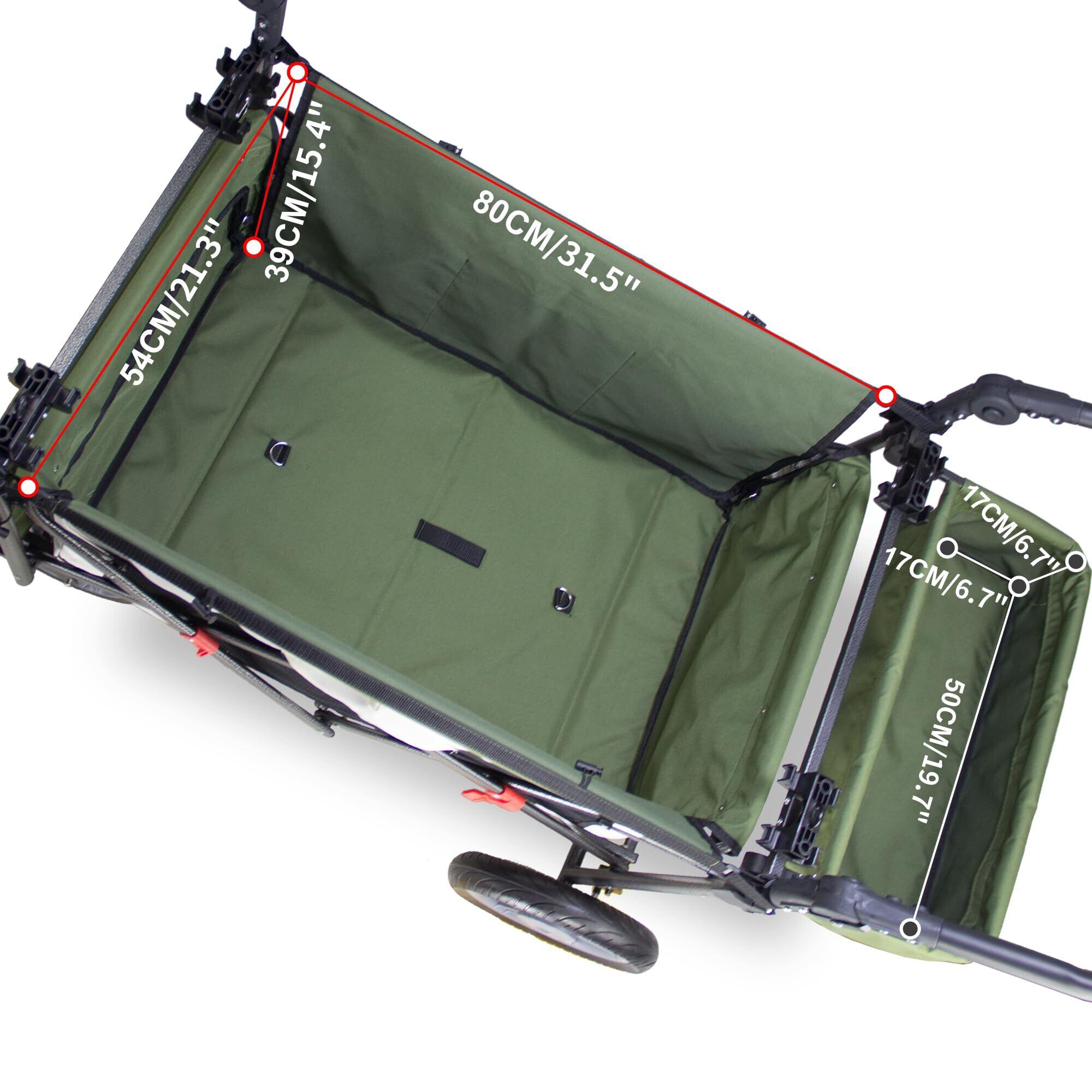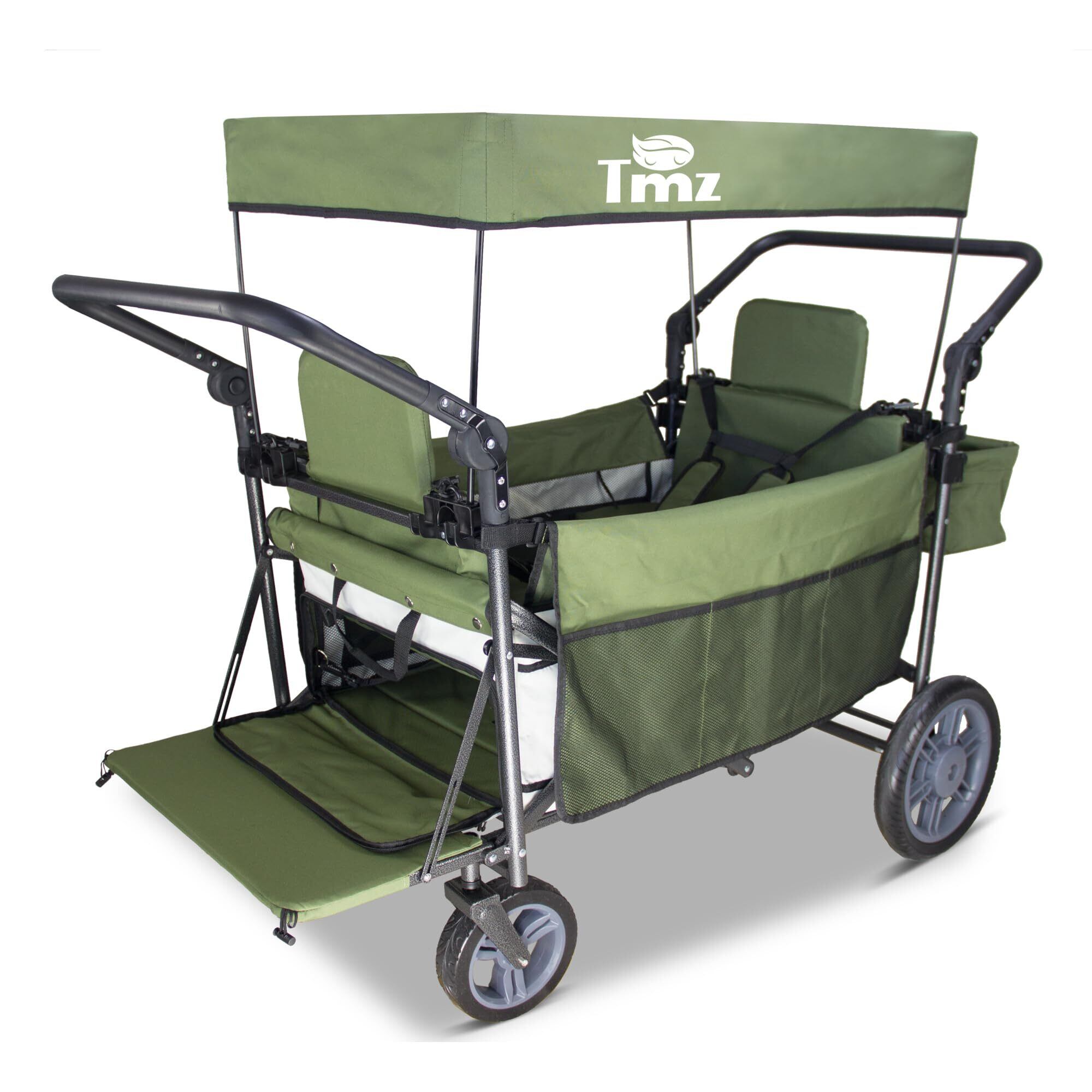 TMZ キャリーカート アウトドアワゴン、折りたたみ式、シートとシートベルト付き多機能カート、荷室拡張可能、前後ダブルプッシュハンドル、耐荷重約120kg、ストッパー付き (グリーン)