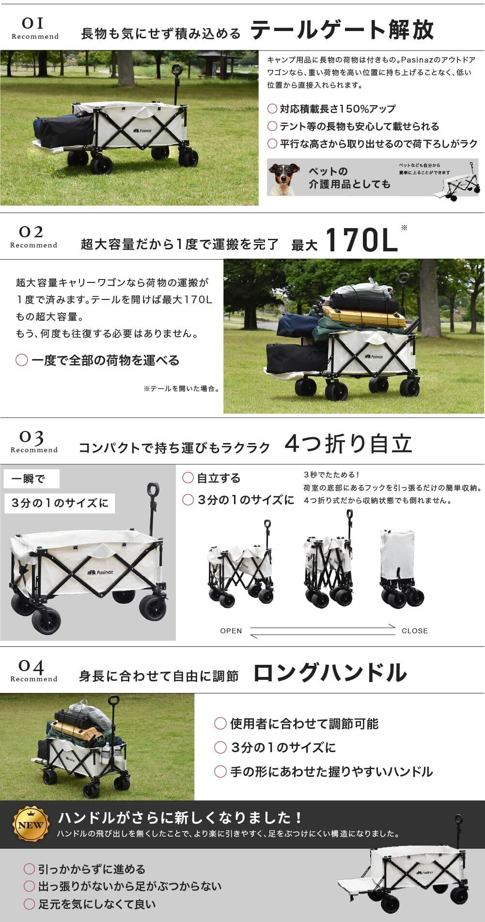 2024年最新モデル 最大310L 2段 後ろ開け 4way アウトドアワゴン キャリーワゴン キャリーカート 片手ハンドル 両手ハンドル 長物 大容量 ワイドタイヤ タイヤ取り外し可能 オシャレ 折りたたみ
