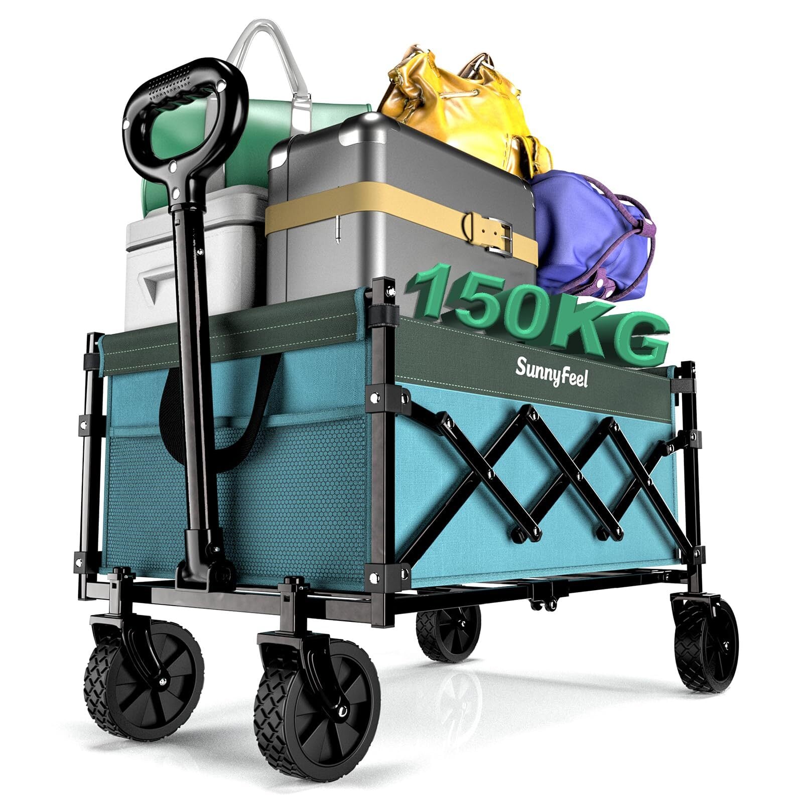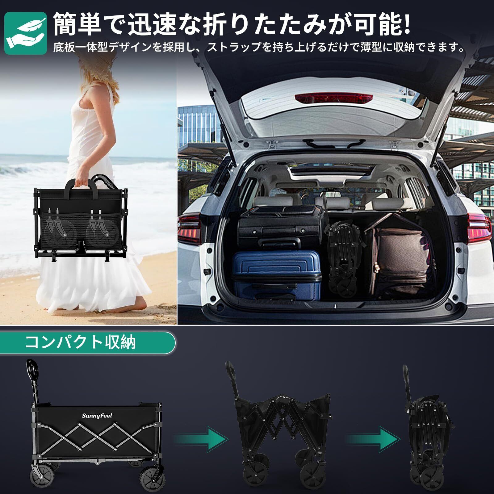 SunnyFeel 大容量120L 耐荷重150k キャリーワゴン 小型 アウトドアワゴン 折りたたみ 本体・底板一体型 ワゴンキャリー キャンプカート キャンプワゴンカート キャンプワゴンカート ワゴンキャリー ワゴンカート カートキャリーワゴンミニ 大容量 アウトドア用キャリーカート タイヤ取り外し可能 4輪 コンパクト 静音 軽量 5.1KG ワンタッチ 自立 アウトドア (ブルー)