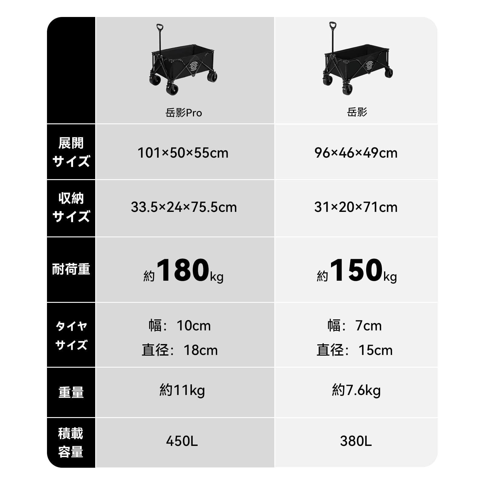 【大容量&高耐荷重設計】耐荷重は最大180kg!しっかりした設計で、重い荷物も安心して運べます。さらに、荷物を積み重ねた時の最大容量は450Lとたっぷり!テントやクーラーボックス、チェアなど、キャンプギアをまとめて運べるので、何度も往復する手間が省けます