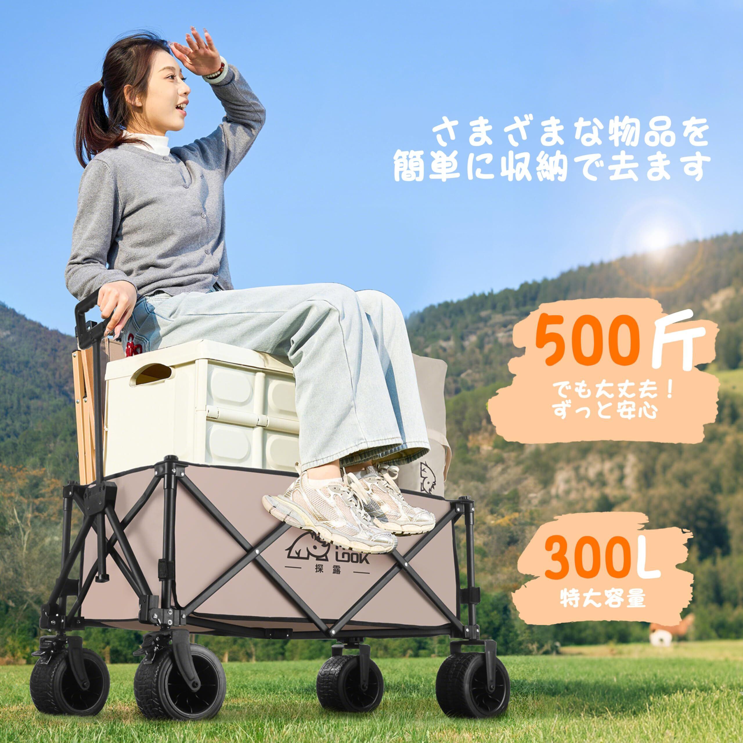 【数量限定】キャリーワゴン アウトドアワゴン 3秒折り畳み 片手操作可能 タイヤ 大容量 150kg耐荷重 多機能キャリーカート コンパクト収納 悪路対応大型ホイール 簡単組み立て式 キャンプ・花見・運動会用 (カーキ)