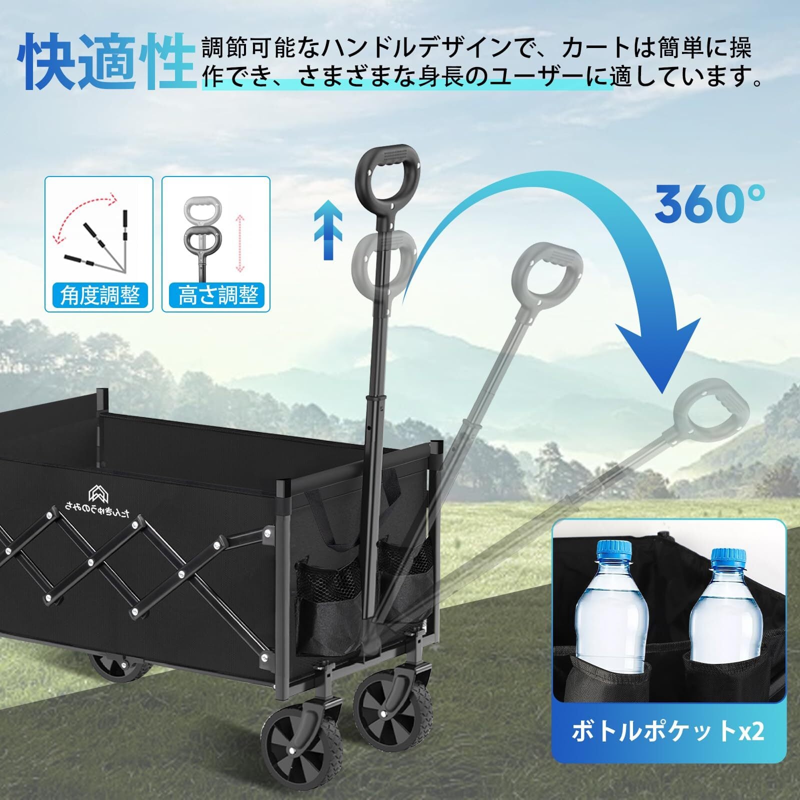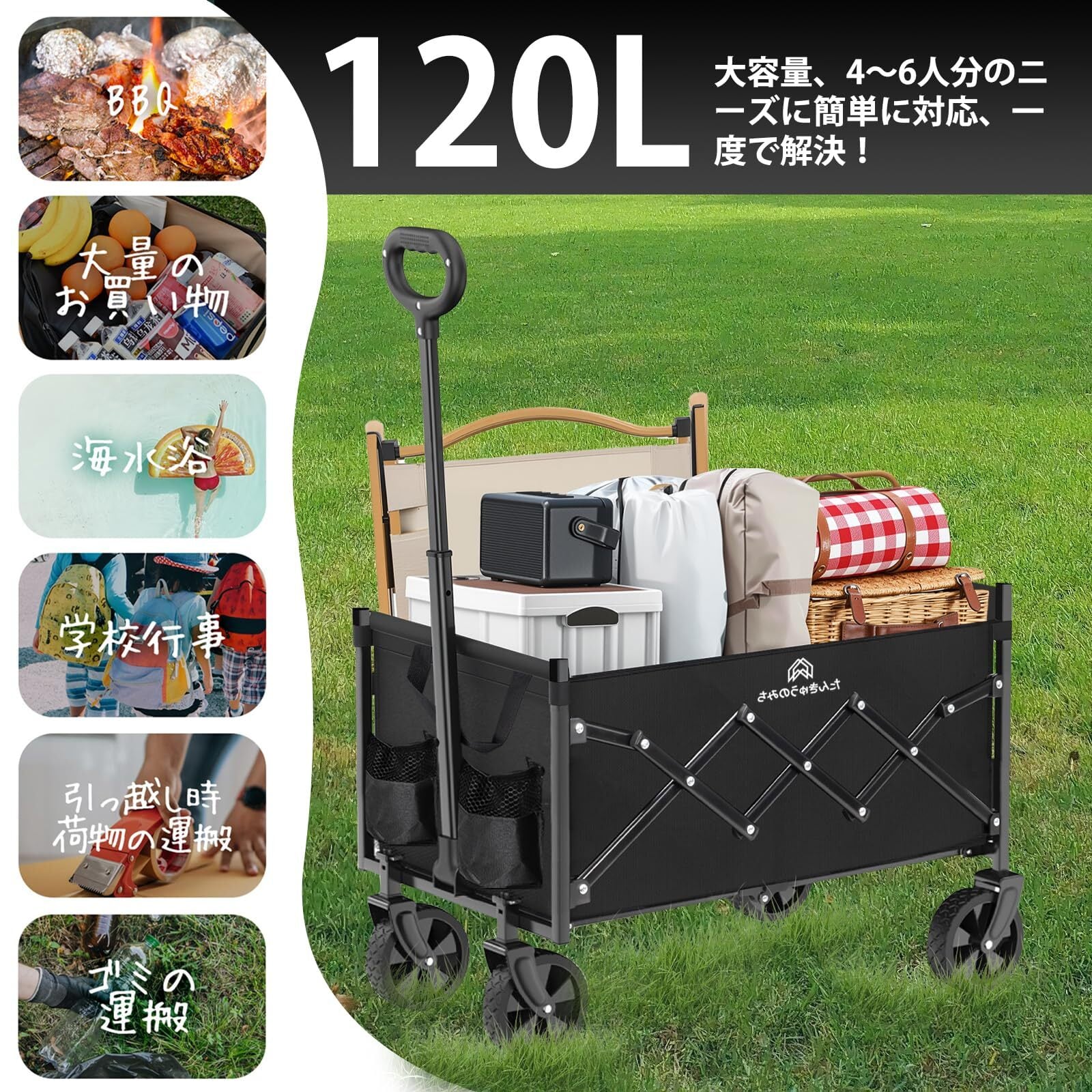 この多機能アウトドアカートは、キャンプ、ショッピング、アウトドア活動、さらにはペット用カートなど、さまざまな用途に最適です。折りたたみ式で軽量、コンパクトに収納でき、持ち運びも簡単です。大容量で120kgまでの耐荷重があり、大きな荷物もしっかりと運べます。高品質の滑らかなタイヤを搭載しており、平坦な道はもちろん、少しでこぼこした道でもスムーズに移動できます。さらに、取り外し可能なデザインで、お手入れが簡単です。防水・防汚機能を備えているため、悪天候でも安心して使用でき、耐久性にも優れています。長期間の使用に適しており、アウトドア活動や日常的な運搬に最適なカートです。