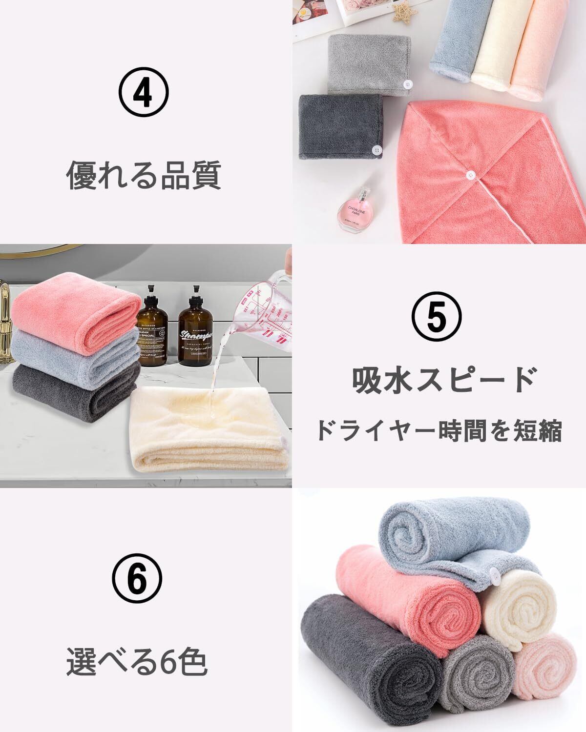 【材質】:ポリエステル85%、ポリアミド15%高級マイクロファイバー素材を採用 - 伝統的な綿タオルと比べると、このヘアードライタオルは毛髪の1/100超微細繊維(マイクロファイバー)で作られたヘアドライタオルです、柔軟で心地良い肌触りです、髪を守ります。品質:このタオルが色褪せない、毛羽落ちしないことを保証します。