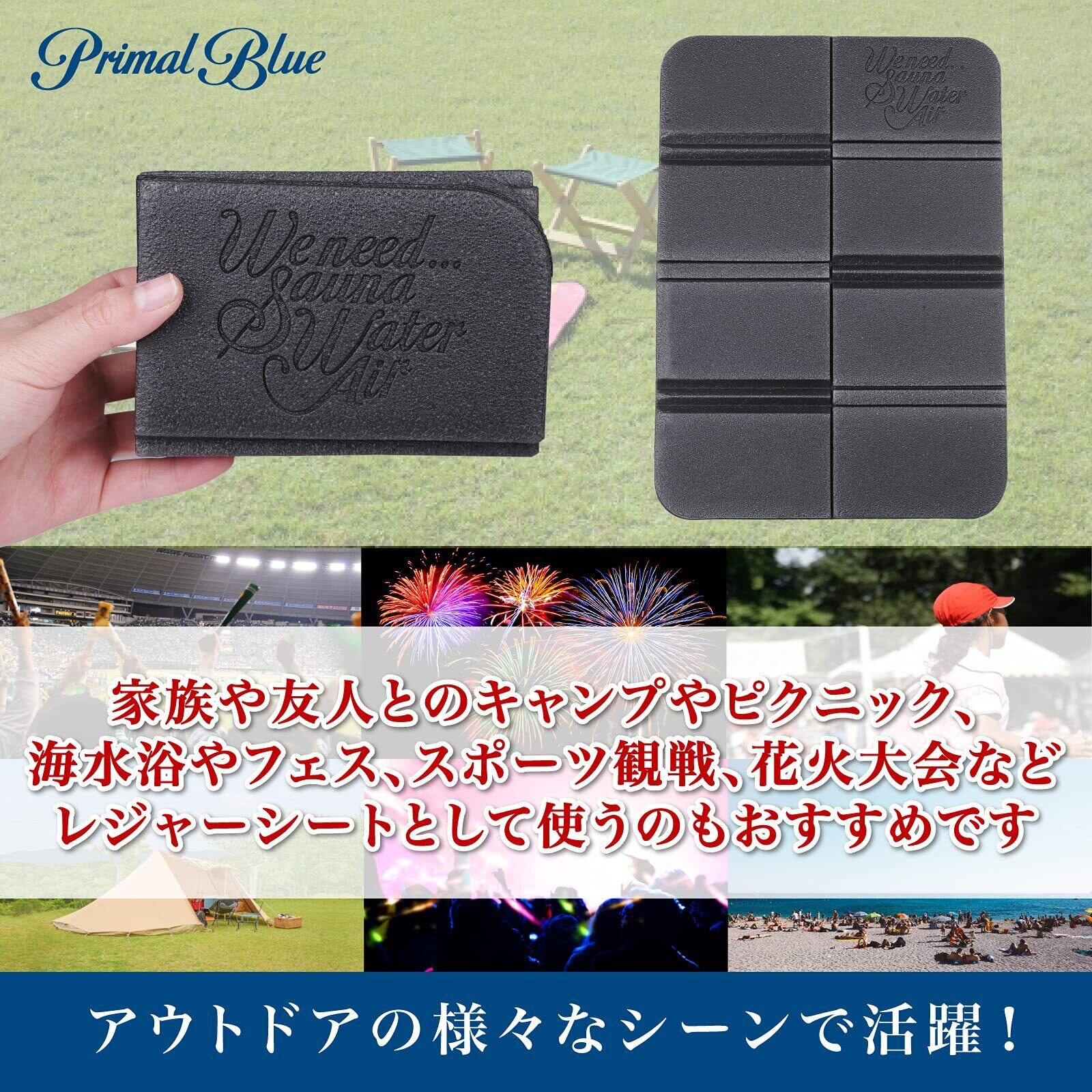 [Primal Blue] サウナマット ポーチセット マット サウナ 座布団 折り畳み 8つ折り sauna サウナー 軽量 コンパクト 持ち運びに便利 防湿 断熱 クッション性 キャンプ アウトドア スポーツ観戦 ブラック オリジナルポーチ