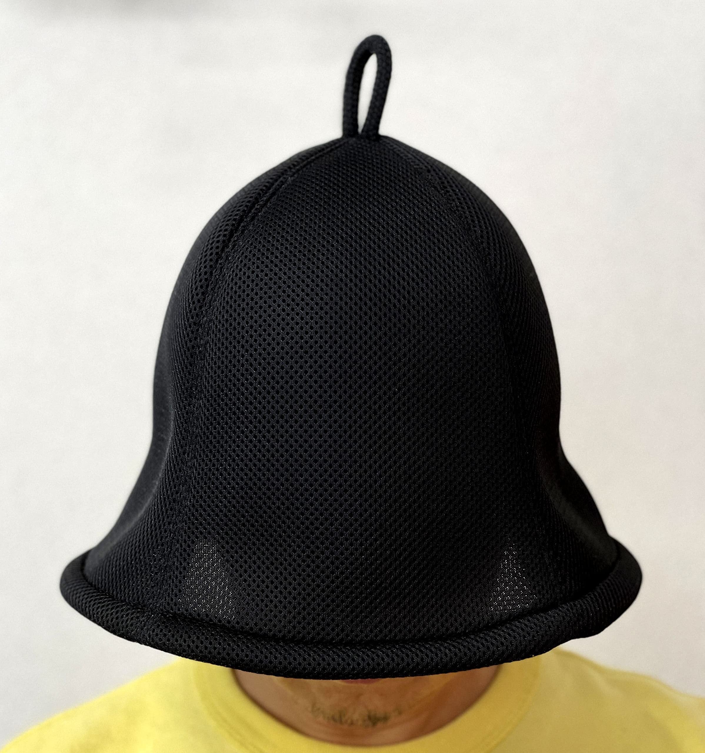 BSH オリジナル ブラック 3重構造 メッシュ素材 大サイズ! サウナハット 男女兼用 ゆったり