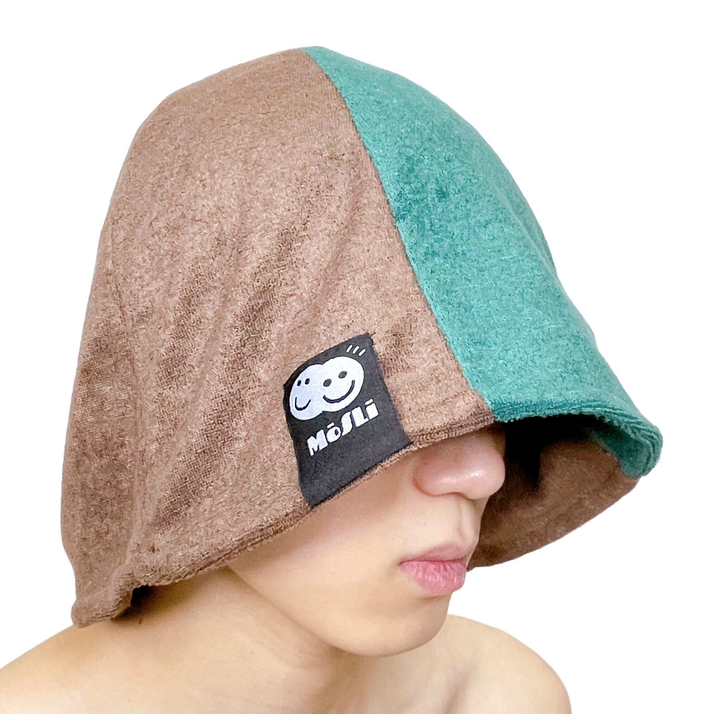 【MoSLiサウナハットの特徴】 MoSLiサウナハットは、やや大きめに設計しておりますので、深く被っていただくことで、髪や頭皮、顔を充分に保護できます。 毎日サウナに通う方にも衛生面など心配なく繰り返しご使用頂けるよう、手軽に洗えて乾きやすい素材にしました。 サラッとしたタオル素材で汗をかいても不快感がありません。 「ブラウン&グリーン」「ブルー」「ネイビー&マスタード」の3色をご用意しました。フリーサイズ、男女兼用となっていますのでお好きなカラーをお選びください。 素材:ポリエステル75% 綿25% サイズ:頂点から底辺までの長さ 約28cm×横 最大幅約40cm、フック長さ約15cm