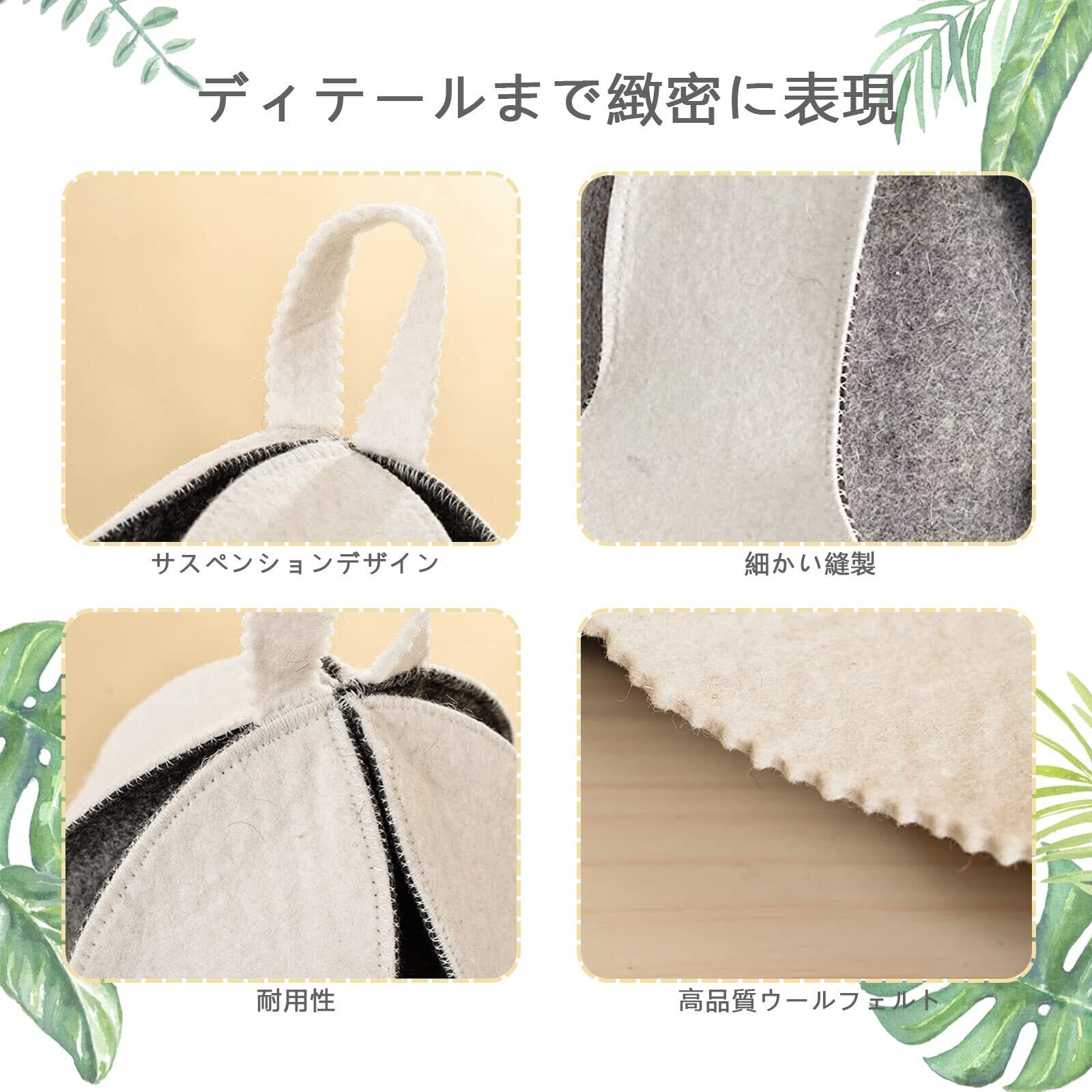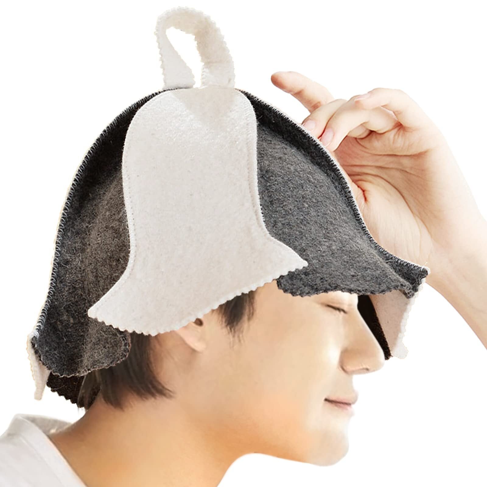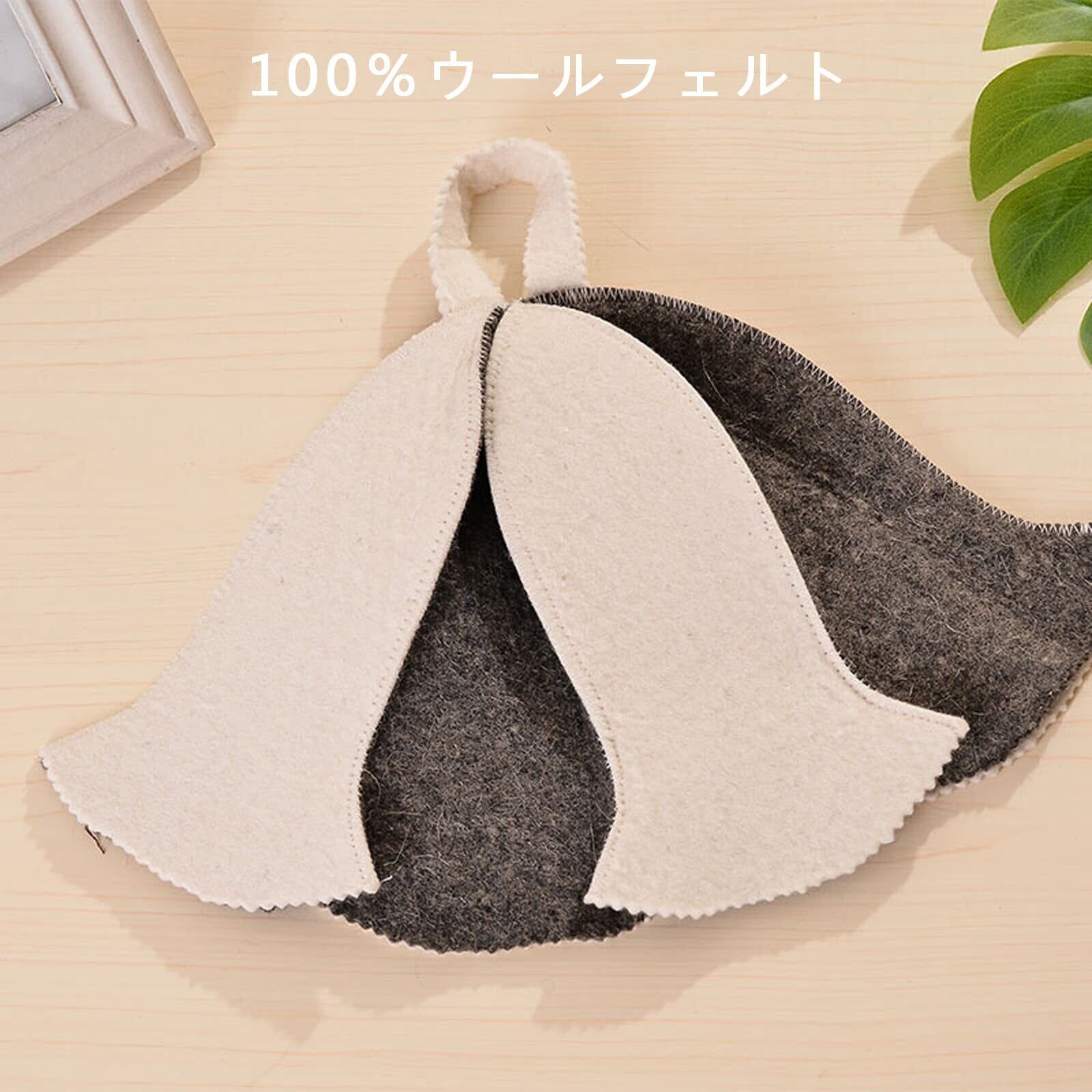 サウナハット ウールフェルト100% 髪を守る のぼせを防ぐ 出かけるデザイン 洗濯可能