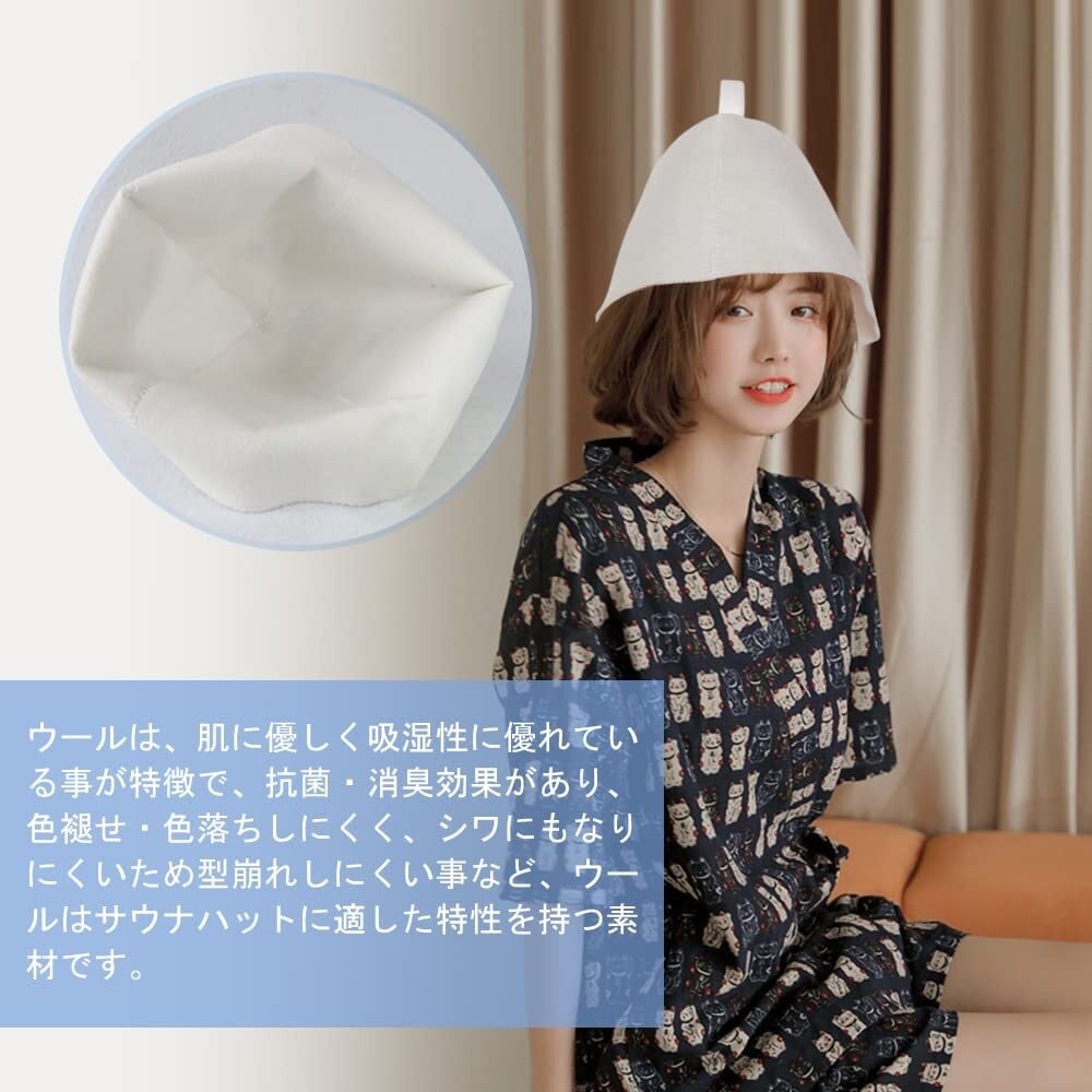 【ウールフエルトを使う理由】ウールは、肌に優しく吸湿性に優れている事が特徴で、抗菌・消臭効果があり、色褪せ・色落ちしにくく、シワにもなりにくいため型崩れしにくい事など、ウールはサウナハットに適した特性を持つ素材です。