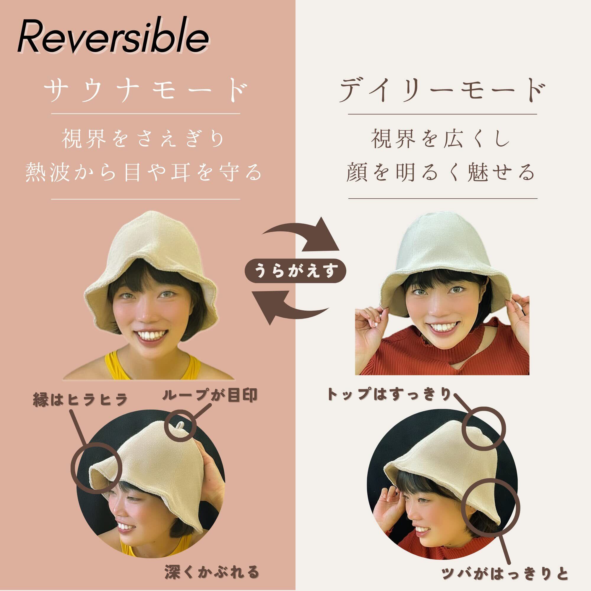 シンプルで美しいシルエット。表はサウナ用に深くかぶれ、裏返すとツバが広がり普段使いもできるリバーシブル仕様。