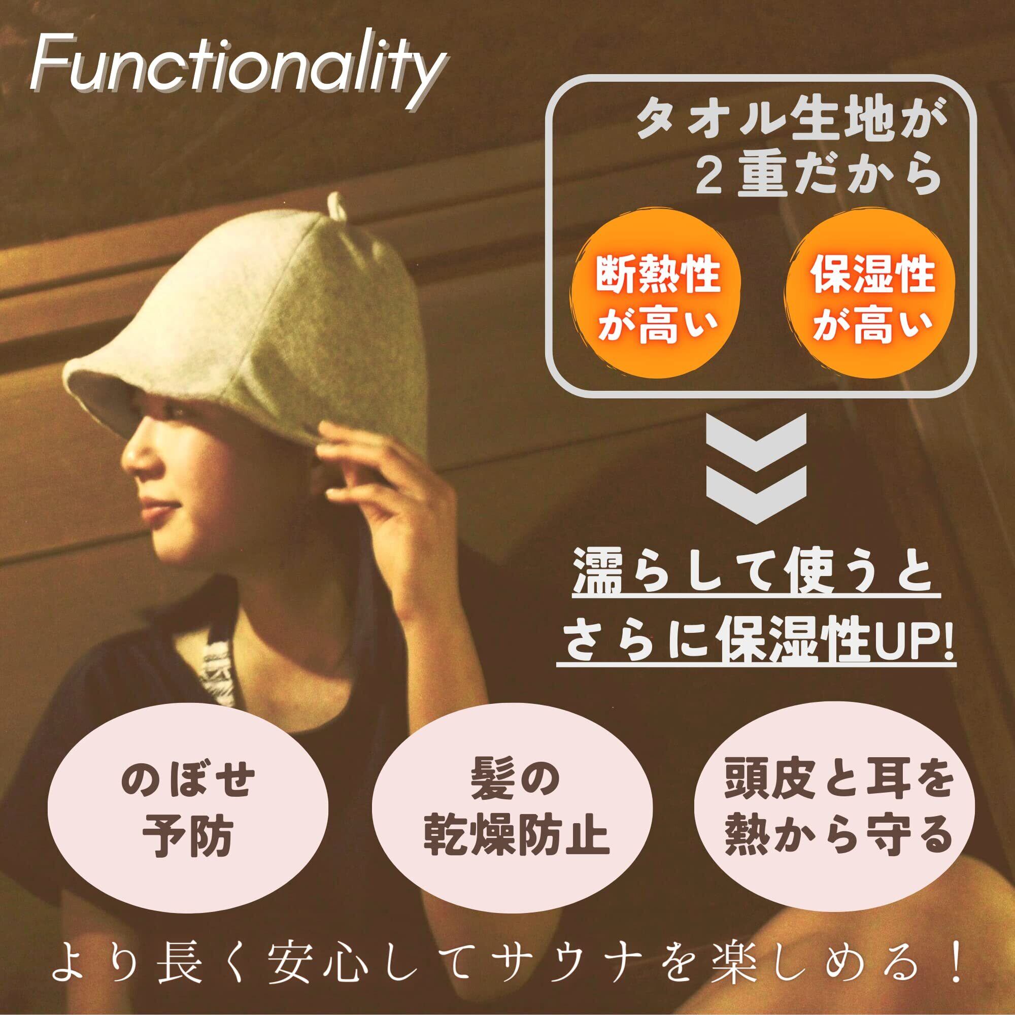 2枚重ねのタオル生地が乾燥と高温から髪をダメージから守り、のぼせ防止に効果的。濡らせば保湿効果がさらにアップします。