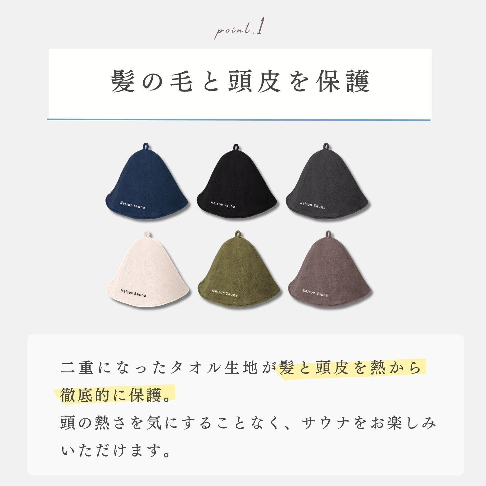 [Maison Sauna] サウナハット 【髪の傷み防止】 のぼせ防止 タオル生地 洗濯簡単 メンズ レディース サウナグッズ おしゃれ