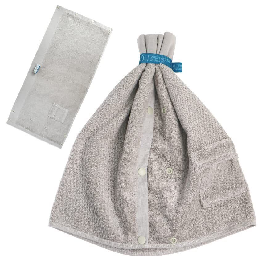 SOU 多機能 サウナハット コットン タオル生地 洗える メンズ レディース サウナグッズ 大きめ サウナタオル (ウォームグレー)