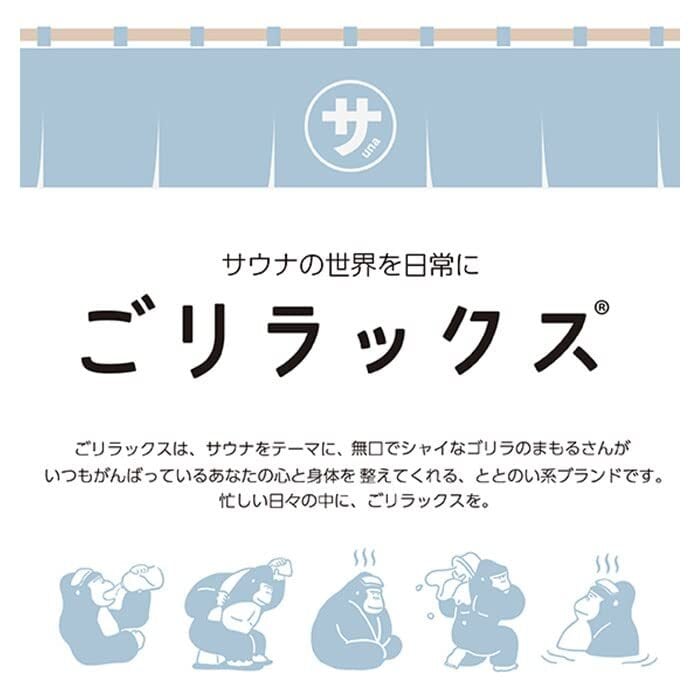ごリラックスは、サウナをテーマに、無口でシャイなゴリラのまもるさんが、いつもがんばっているあなたの心と身体を整えてくれる、ととのい系ブランド。