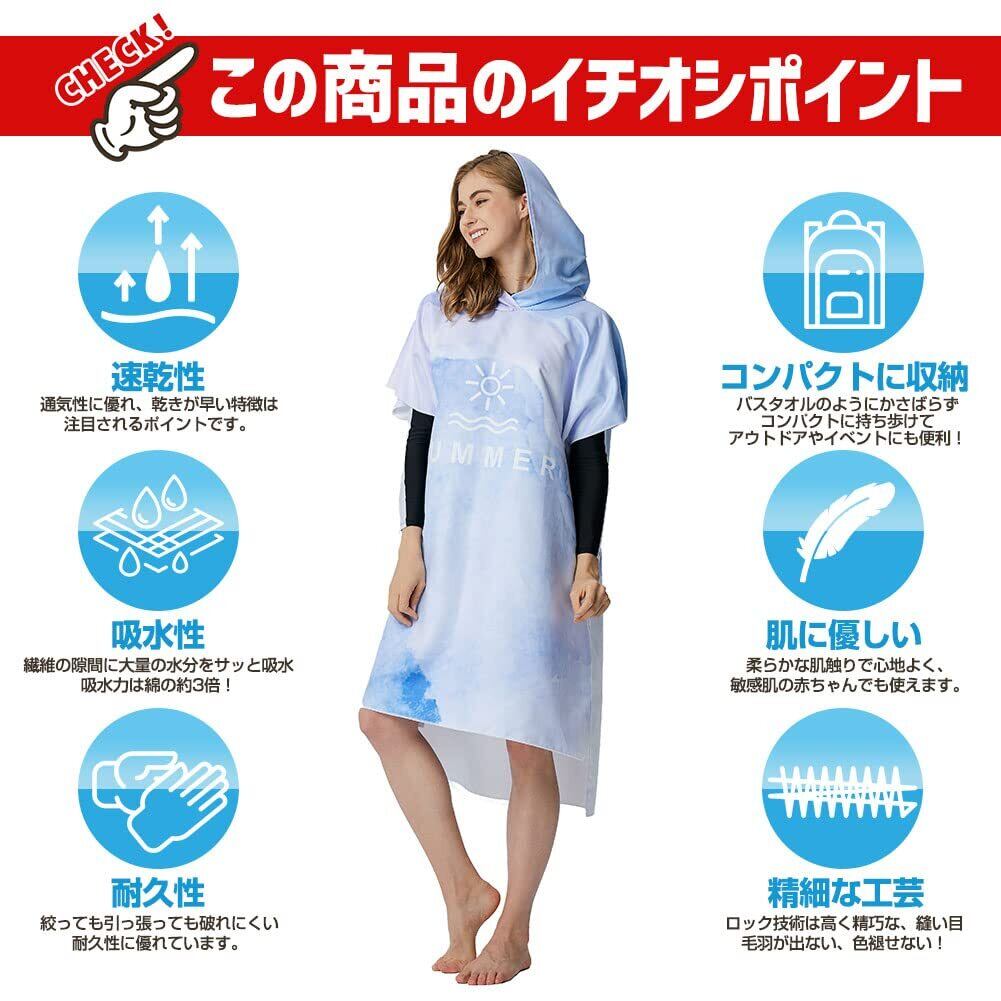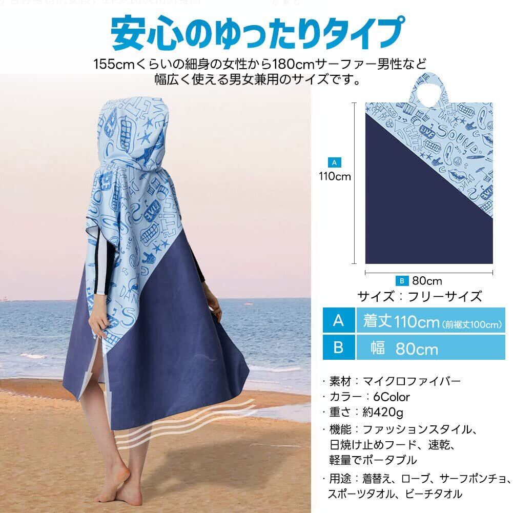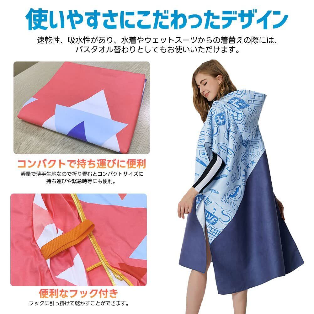 お着替えポンチョ タオルポンチョ マイクロファイバー フード付き サーフィンポンチョ サウナポンチョ バスローブ メンズ レディース 軽量 速乾吸水 通気 防寒 収納便利 肌に優しい 日よけ サウナグッズ