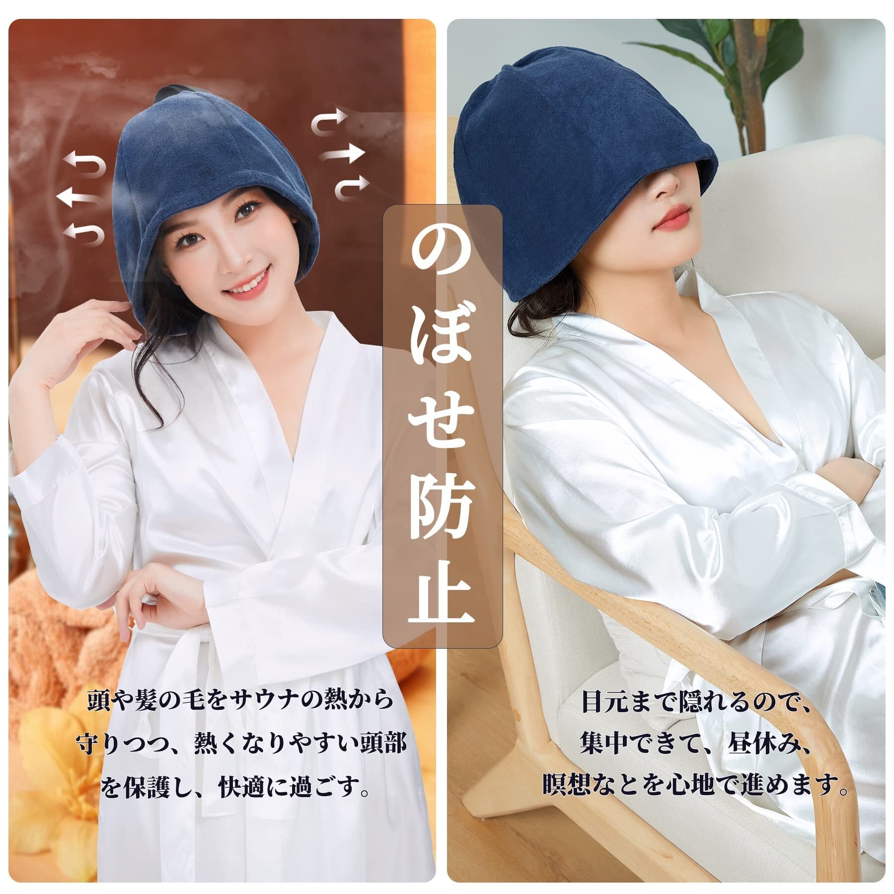 【髪のダメージやのぼせ防止】サウナの高温&乾燥から美髪を保護し潤いを保ちます。のぼせや熱さによる耳や頭部へのダメージを防ぎ、長時間のサウナご利用や目線を遮って集中するのにもおすすめです。