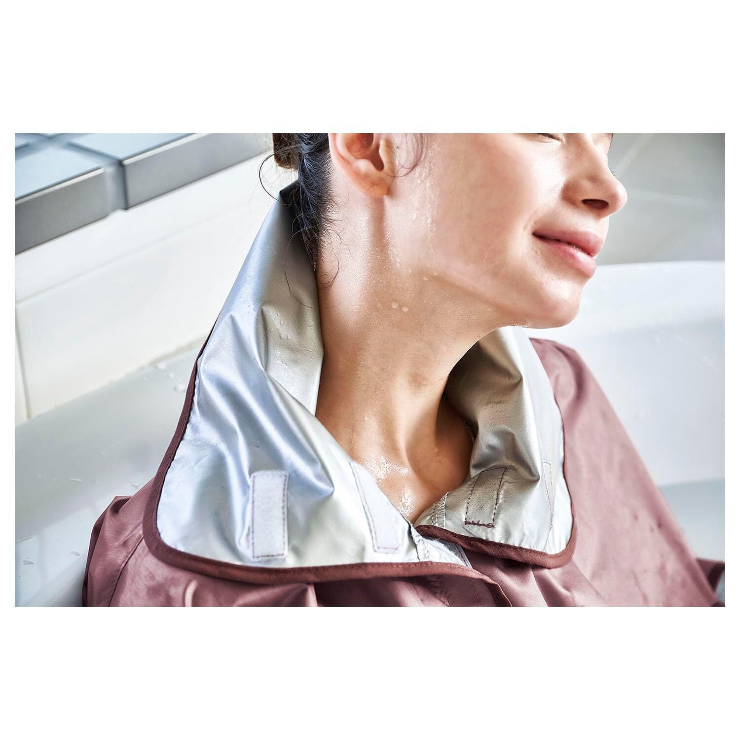 ●半身浴に面ファスナーで着脱しやすく首まわりのサイズ調節も簡単。