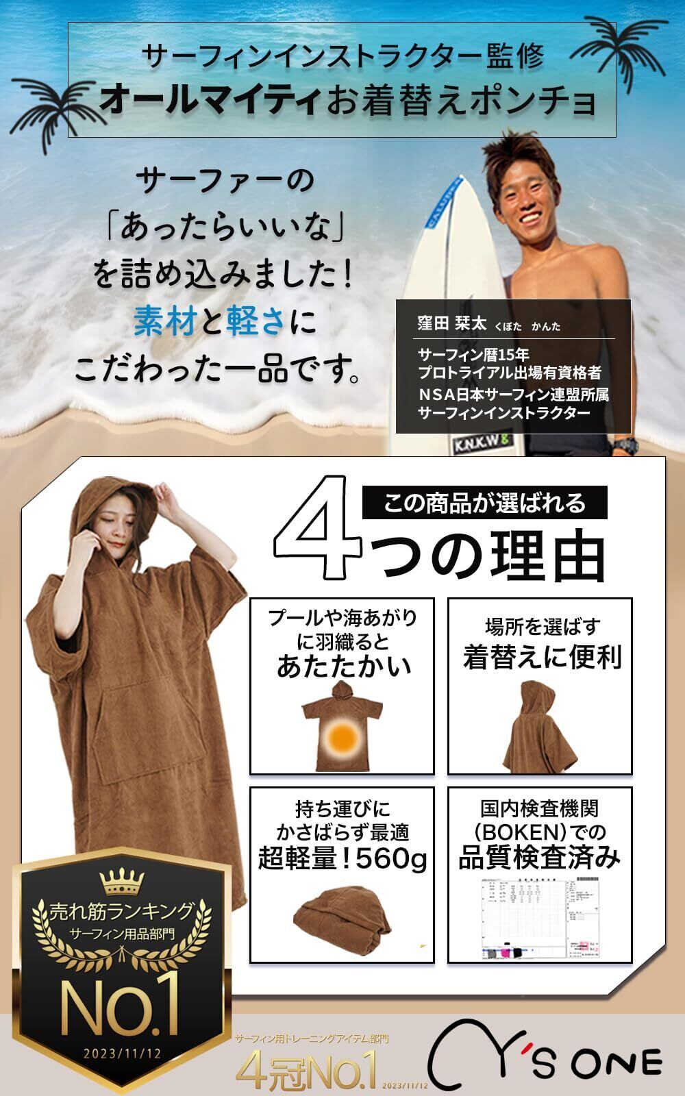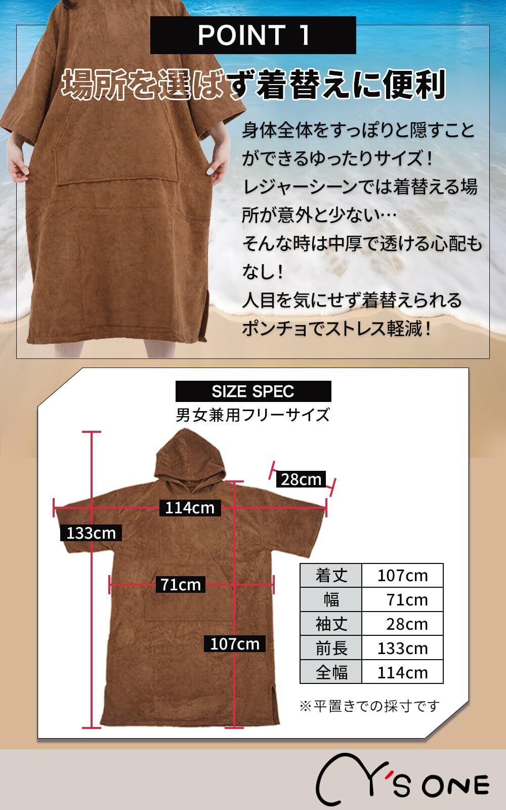 [Y’s ONE] 【サーフィンインストラクター監修】サーフポンチョ サーフィン ポンチョ タオル お着替え メンズ レディース サウナポンチョ