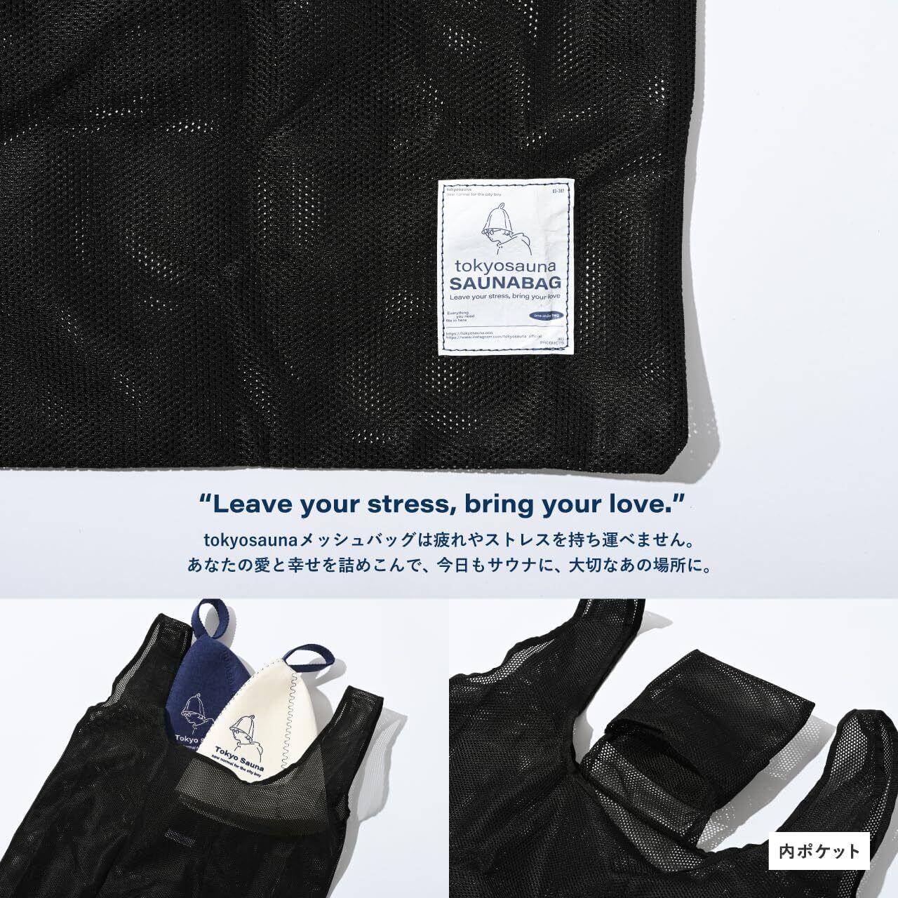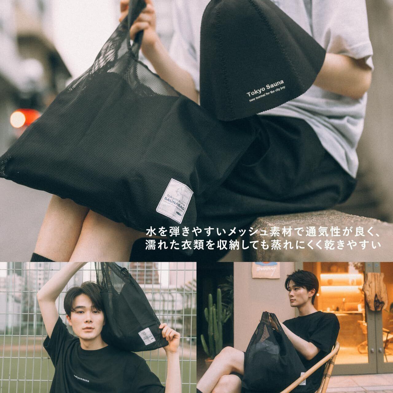 【サウナバッグ】サウナグッズをコンパクトにまとめられるメッシュトートバッグ。通気性に優れたメッシュ生地で、サウナや温泉、プール、海水浴といった様々な用途で使用可能。また、網目なので水や砂がバッグに溜まりません。また、内ポケット付きで鍵やイヤホン、コインケースなどの小物が入れられます。
