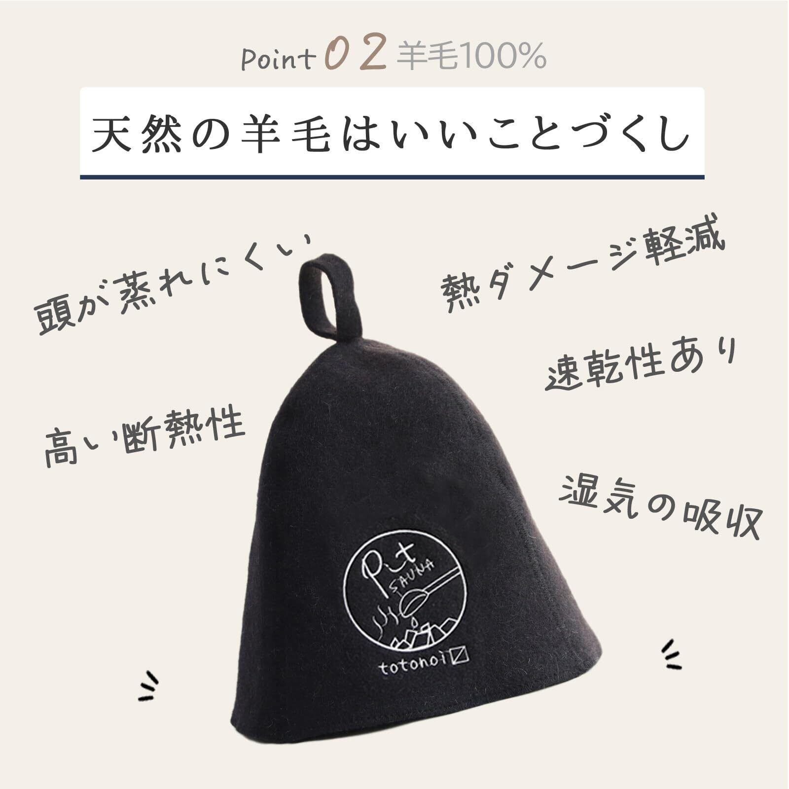 [ピットライフ] Pit SAUNA サウナハット 大きめ メンズ 深め 羊毛100% ウールフェルト 撥水 洗濯可 のぼせ防止 日本製 クロス付き ギフト対応