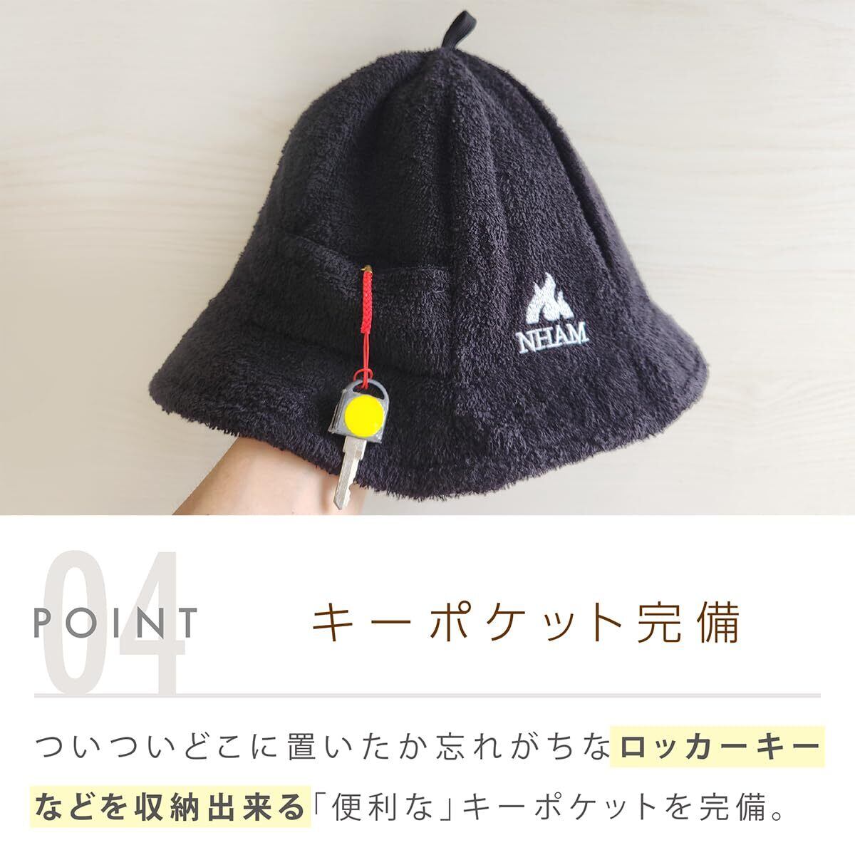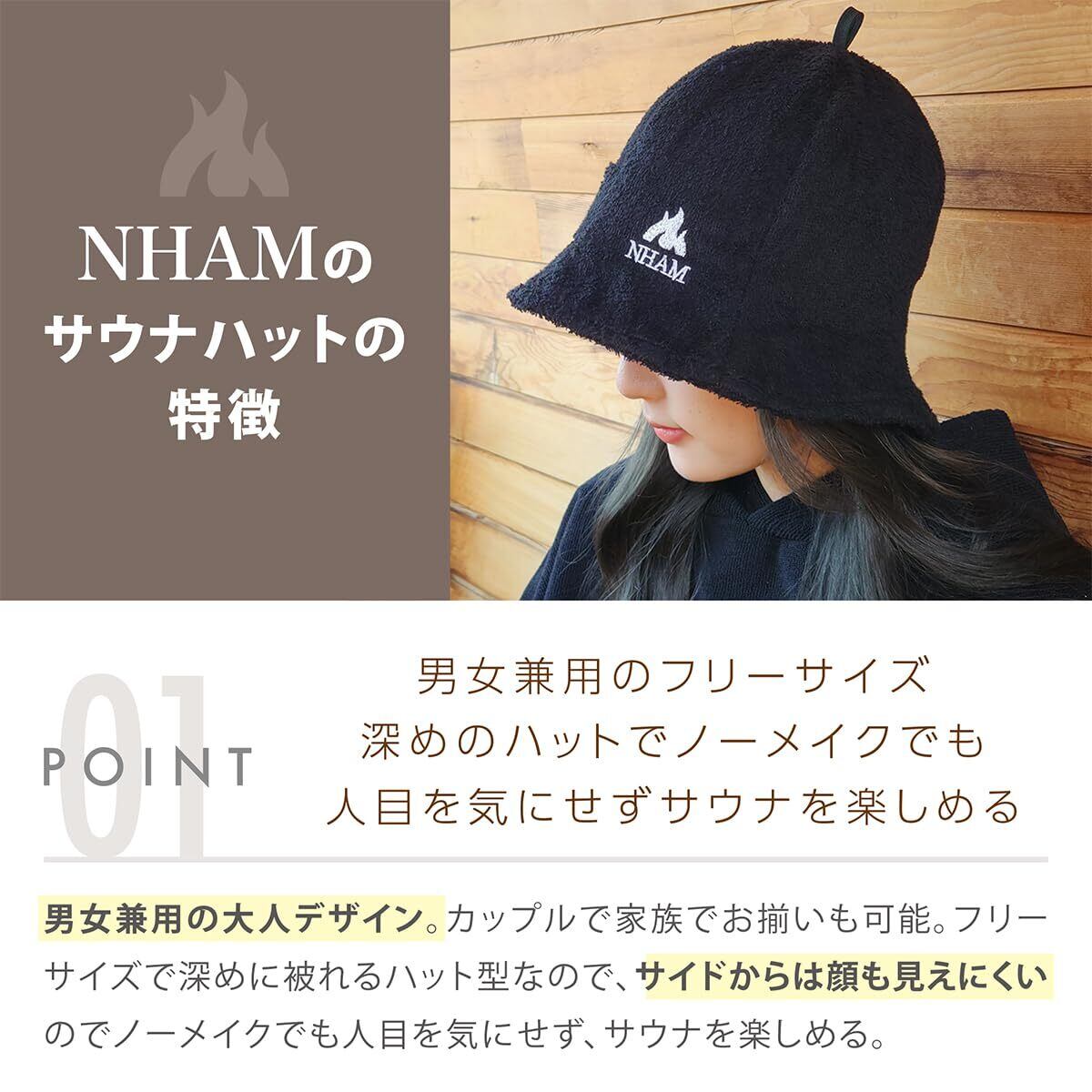 [NHAM] サウナハット メンズ サウナグッズ レディース ユニセックス 男女兼用 タオル地 大きめ 深め コットン100% 吸水性 フリーサイズ 収納ポーチ付 洗濯出来る ポケット付き