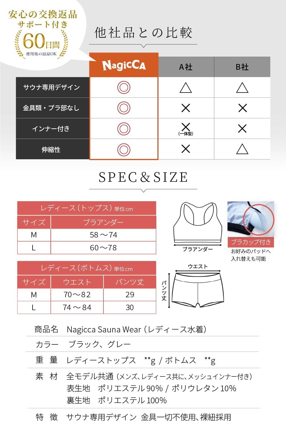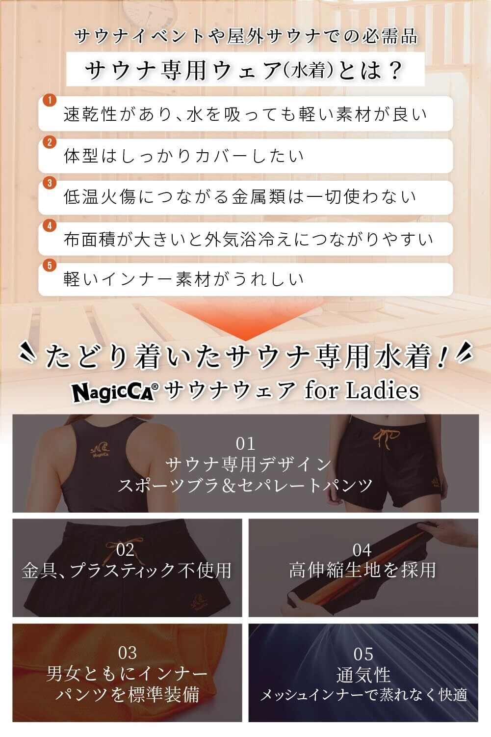 [NagicCA] サウナ水着 レディース TOPS トップス サウナ専用デザイン 外気浴で冷えすぎない布面積 屋外サウナ 快適設計 テントサウナ アウトドアイベント