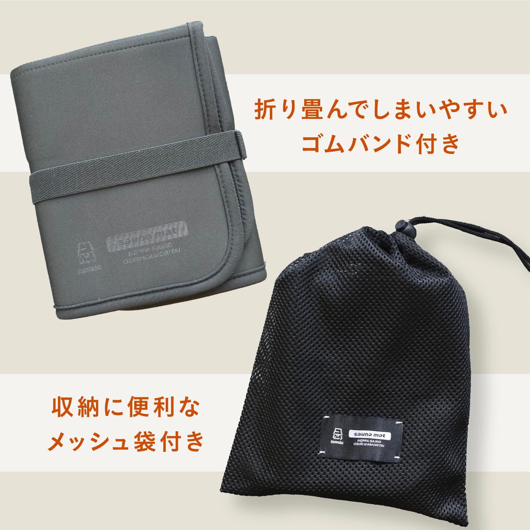 サウナ内はもちろん、外気浴のときには普段座ったらお尻が痛くなってしまう場所(岩肌の段差など)でも、お尻の下に敷いて座れるので、ゆっくりと外気浴が出来ます。