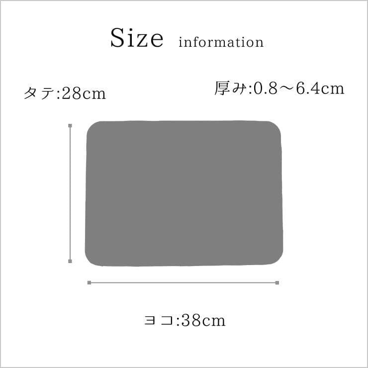 サイズ/ 展開時: ヨコ38cm×タテ28cm×厚み0.8cm ポーチ収納時: ヨコ24cm×タテ21cm×厚み5cm