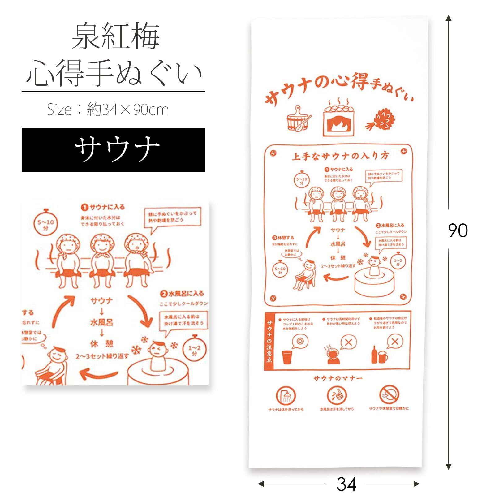 宮本 手ぬぐい 泉紅梅 心得手ぬぐい サウナ 日本製 ホワイト 約34×90cm 24988