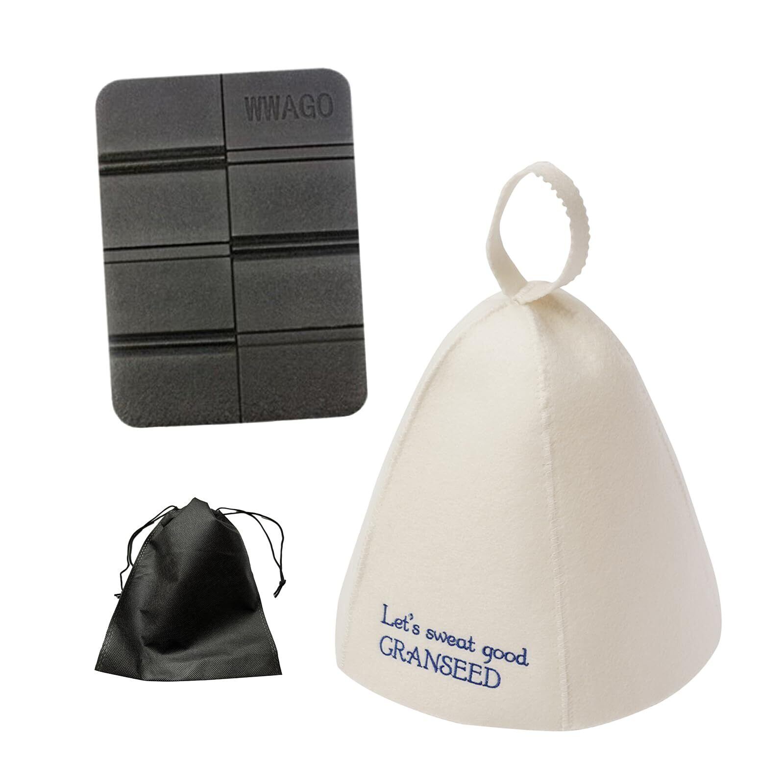 [GRANSEED] サウナハット サウナマット 2点セット 巾着袋付き 帽子 マット グッズ 洗える 整う メンズ レディース フリーサイズ 髪の毛 頭皮 保護 乾燥防止