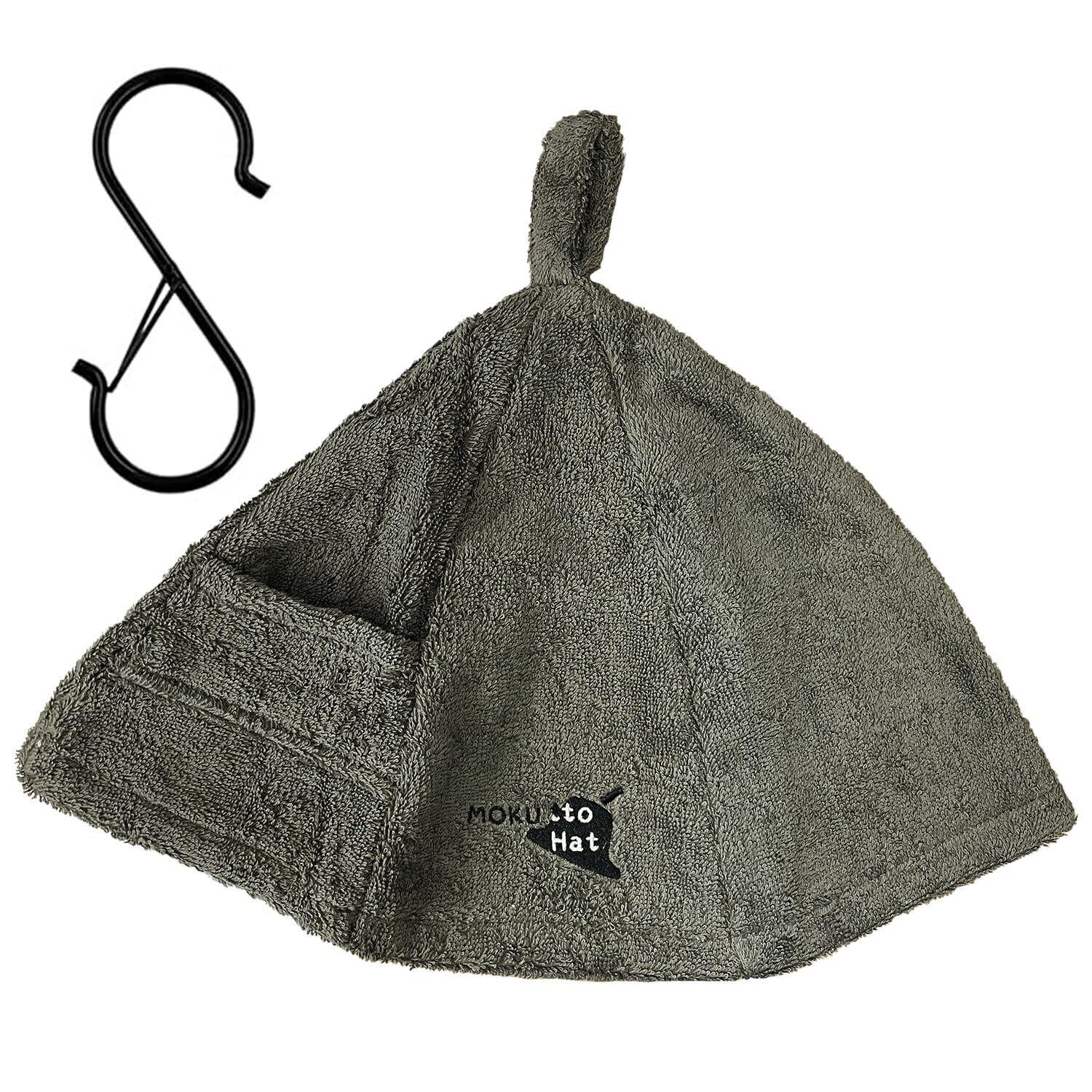 吸水力にこだわった 綿100% タオル サウナハット(チャコールグレー) メンズ&レディース 鍵ポケット付 洗濯OK 深くかぶれる 髪を保護 サウナキャップ