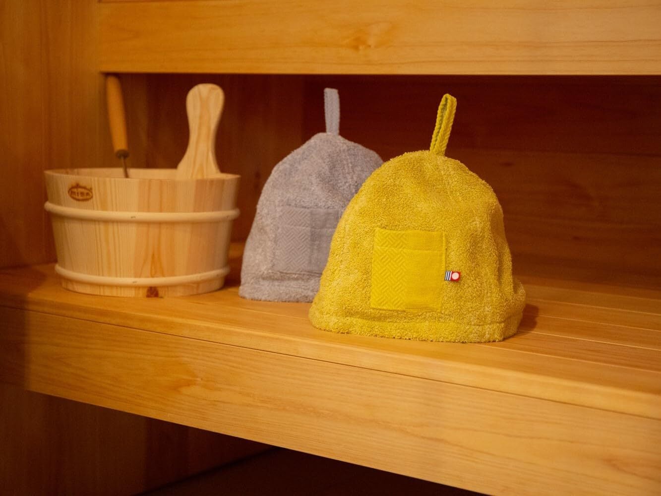 ポケットと頭頂部のループ部分は、kasumi のタオルシリーズのデザインの特徴でもある「ヘム(タオルの端っこ)」のデザインをそのまま生かしているので、タオルとセットで使っていただくのもおすすめです。
