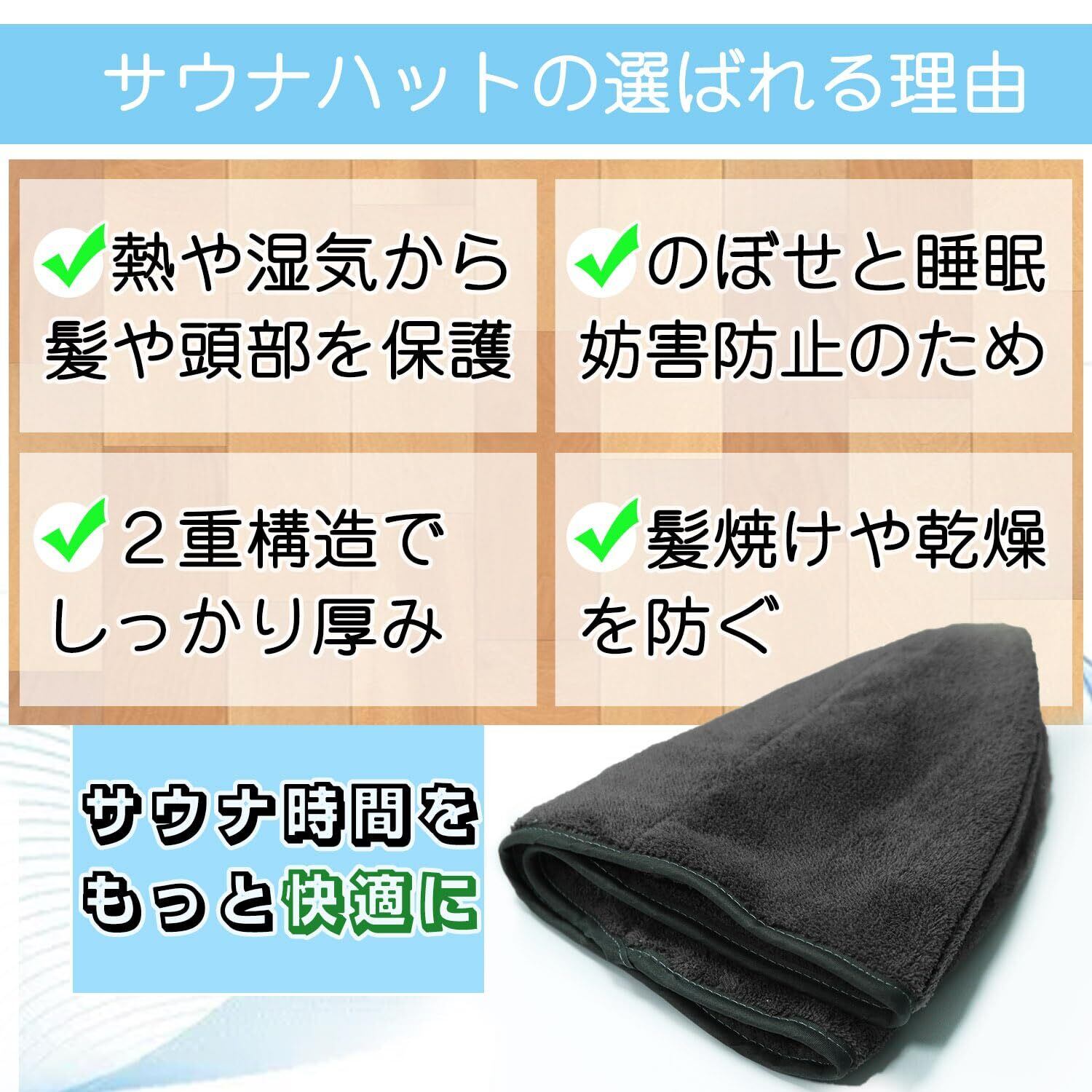 【髪のダメージを防い】髪は熱や乾燥にとても弱く、長時間高温のサウナに入っているとダメージを受けてしまいます。サウナハットは乾燥や熱による髪のダメージを防いでくれる。