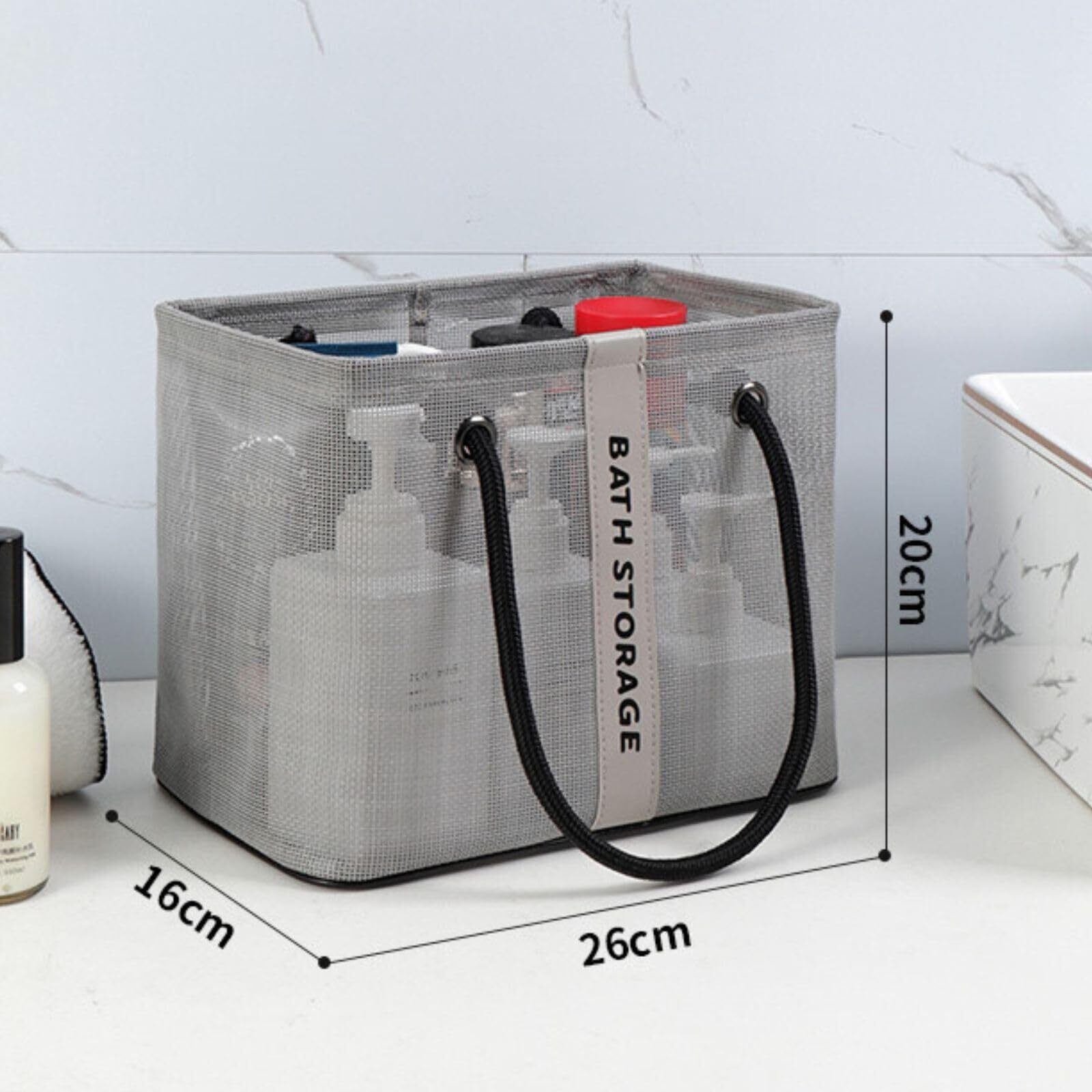バッグ 温泉 バス プール サウナ 銭湯 風呂 スパ ジム 海水浴 ビーチ トラベル 旅行 アウトドア レジャー トート かばん 手提げ メッシュ 網 バスグッズ 洗面用具 ポータブル (グレー)