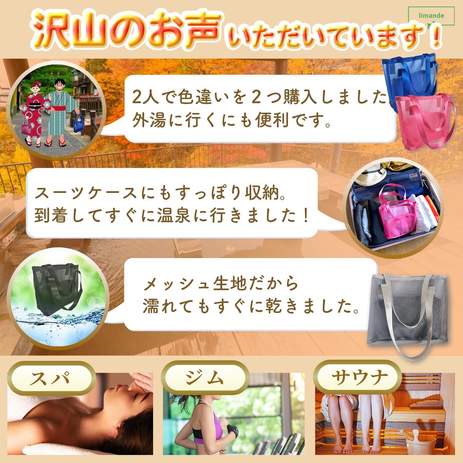 [limande] スパバッグ 温泉グッズ サウナバッグ カラフル4色 ポーチ付き 24×20cm バッグインバッグ 軽量設計