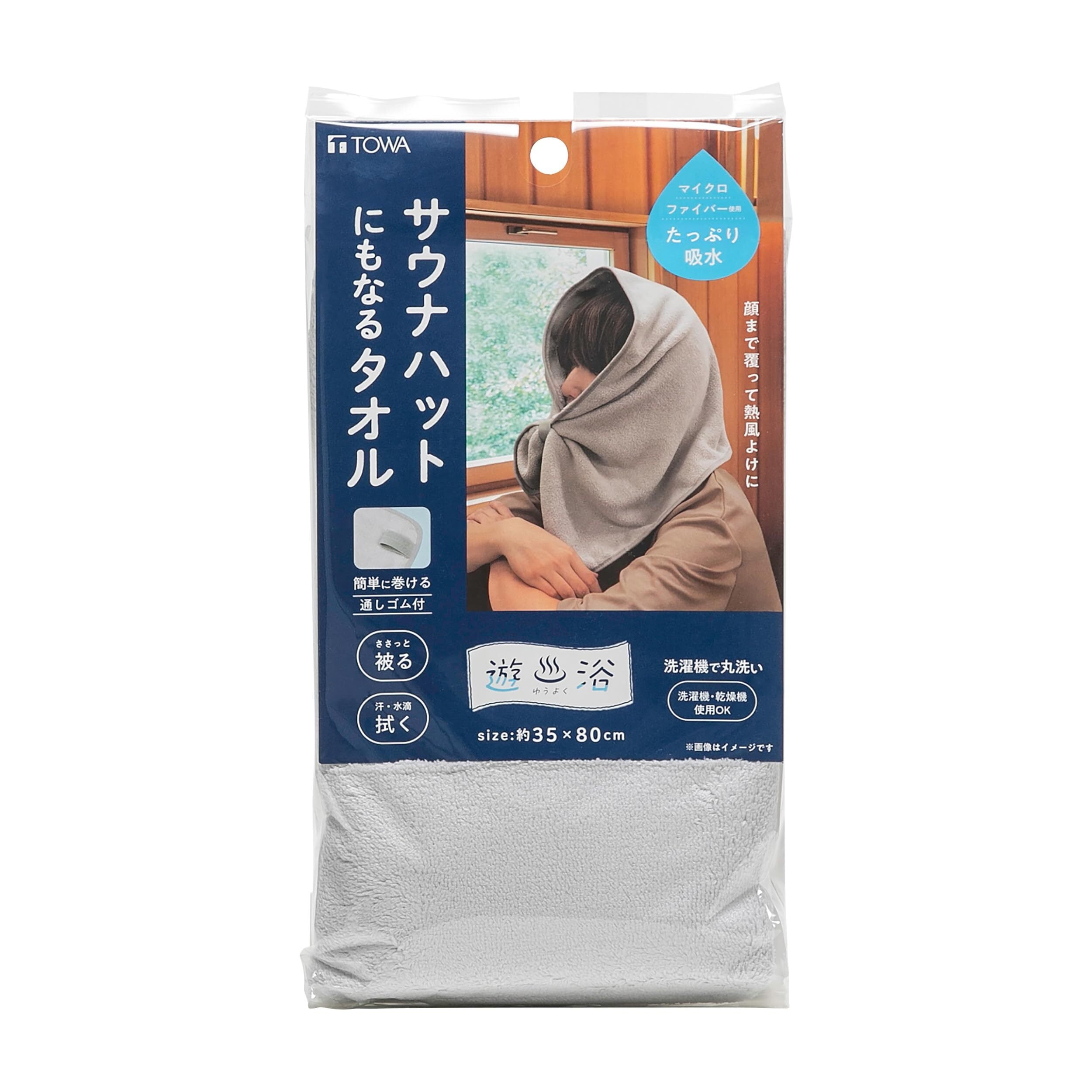 東和産業 遊浴 サウナハットにもなるタオル Gy 約35×80cm マイクロファイバー たっぷり吸水 熱風除け サウナハット 洗濯可能 乾燥機対応 温泉 30071