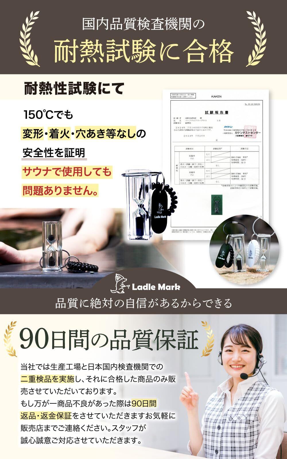 【YouTuber監修】「Ladle Mark」ハイロ サンドタイマー サウナ ガラス 防水 砂時計 6分計 6min 自分だけの時間 おしゃれ サウナタイム 水風呂 耐熱性 軽量 携帯 割れにくい 12分計 防水タイマー サウナウォッチ hourglass アクリル 黒 ブラック