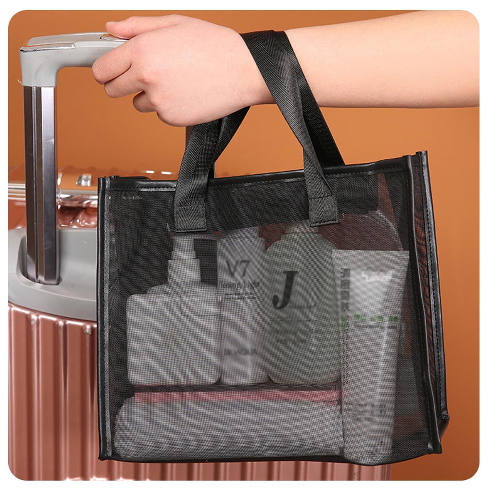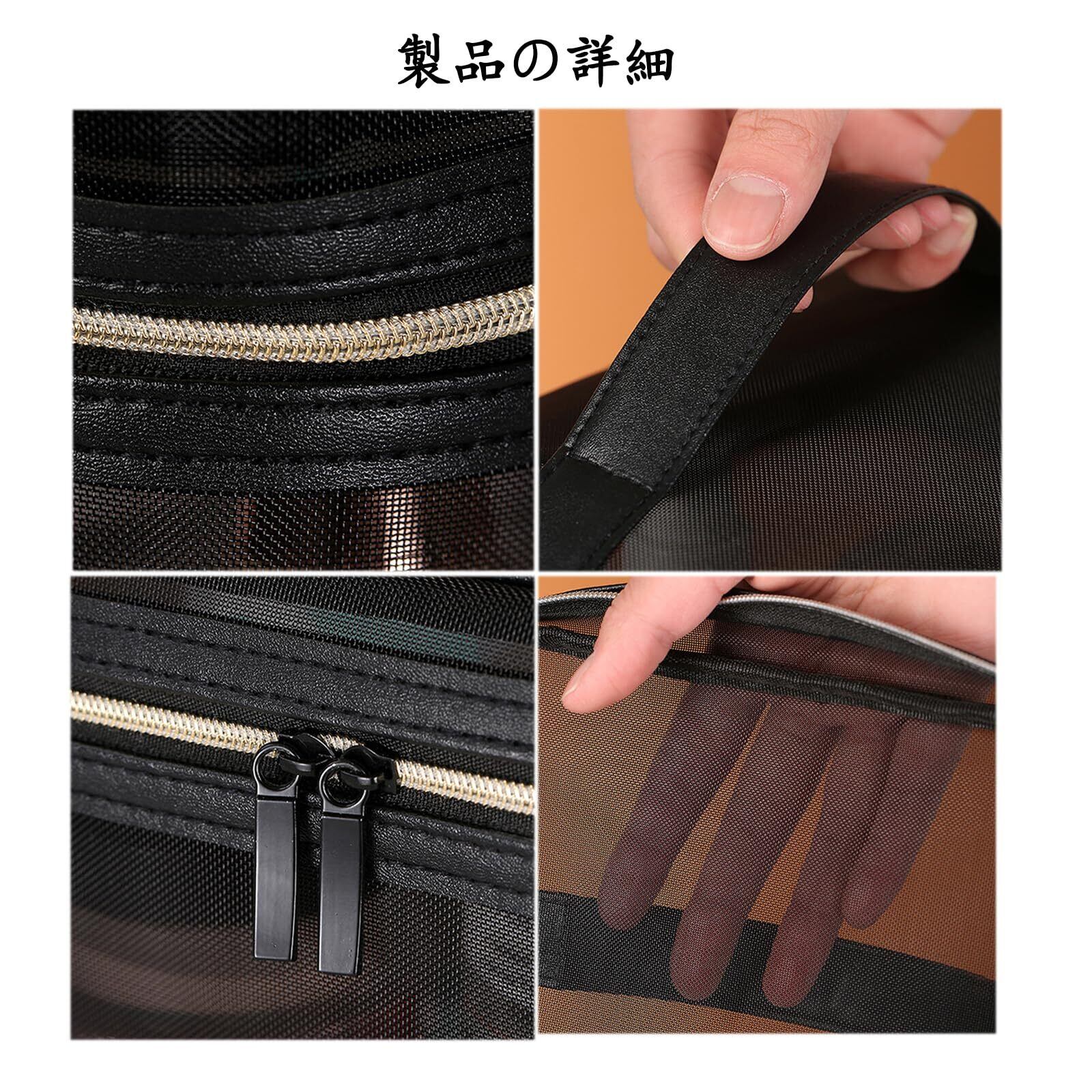 十分なスペース:メッシュ化粧バッグは、すべての必需品を収納できる十分なスペースを提供しながら、持ち運びに十分なコンパクトさと軽量さを備えています。