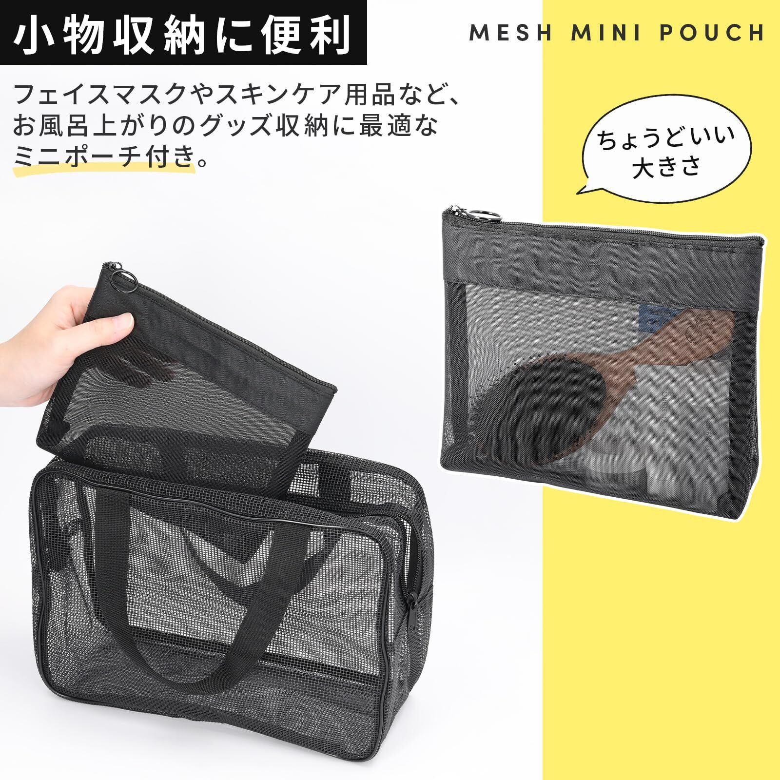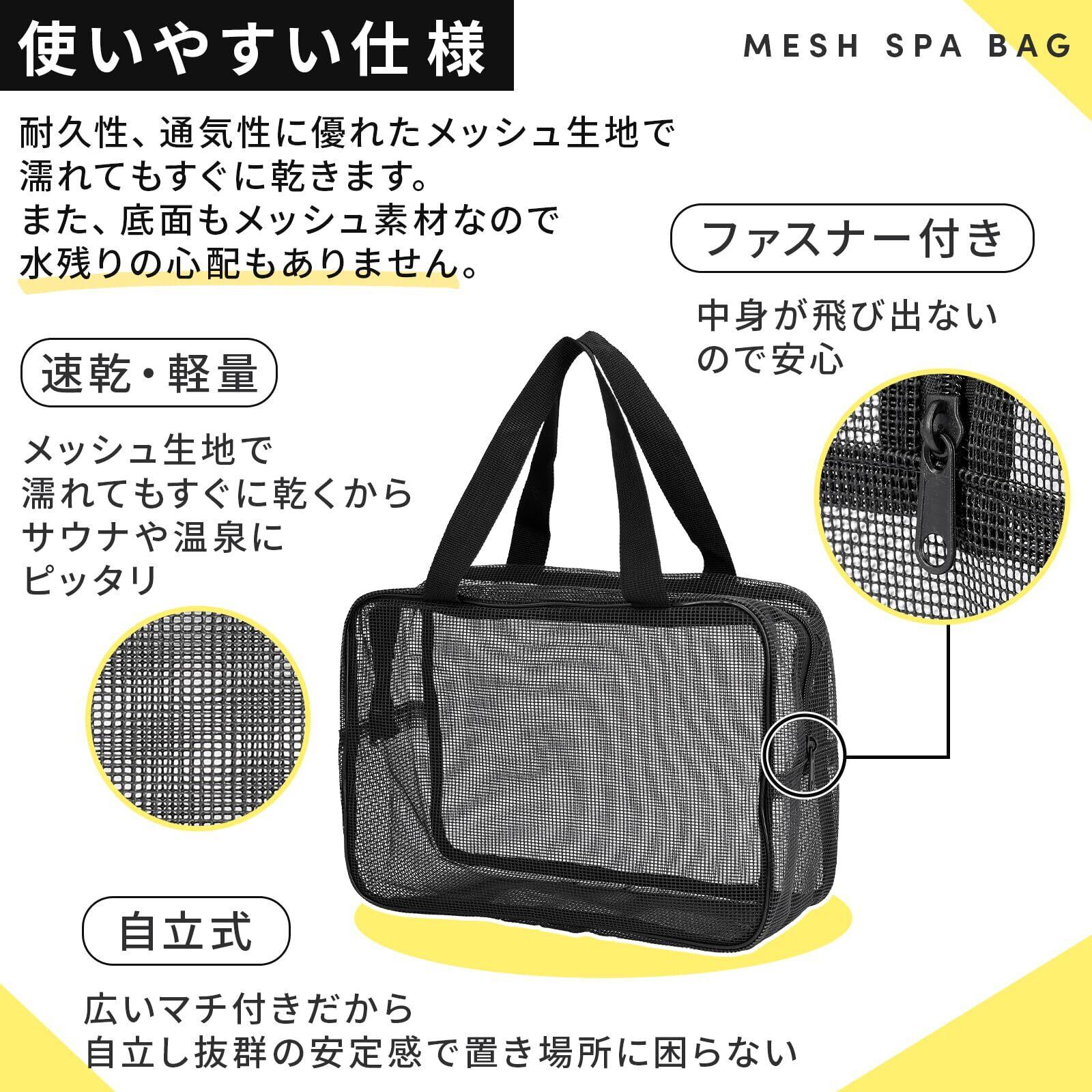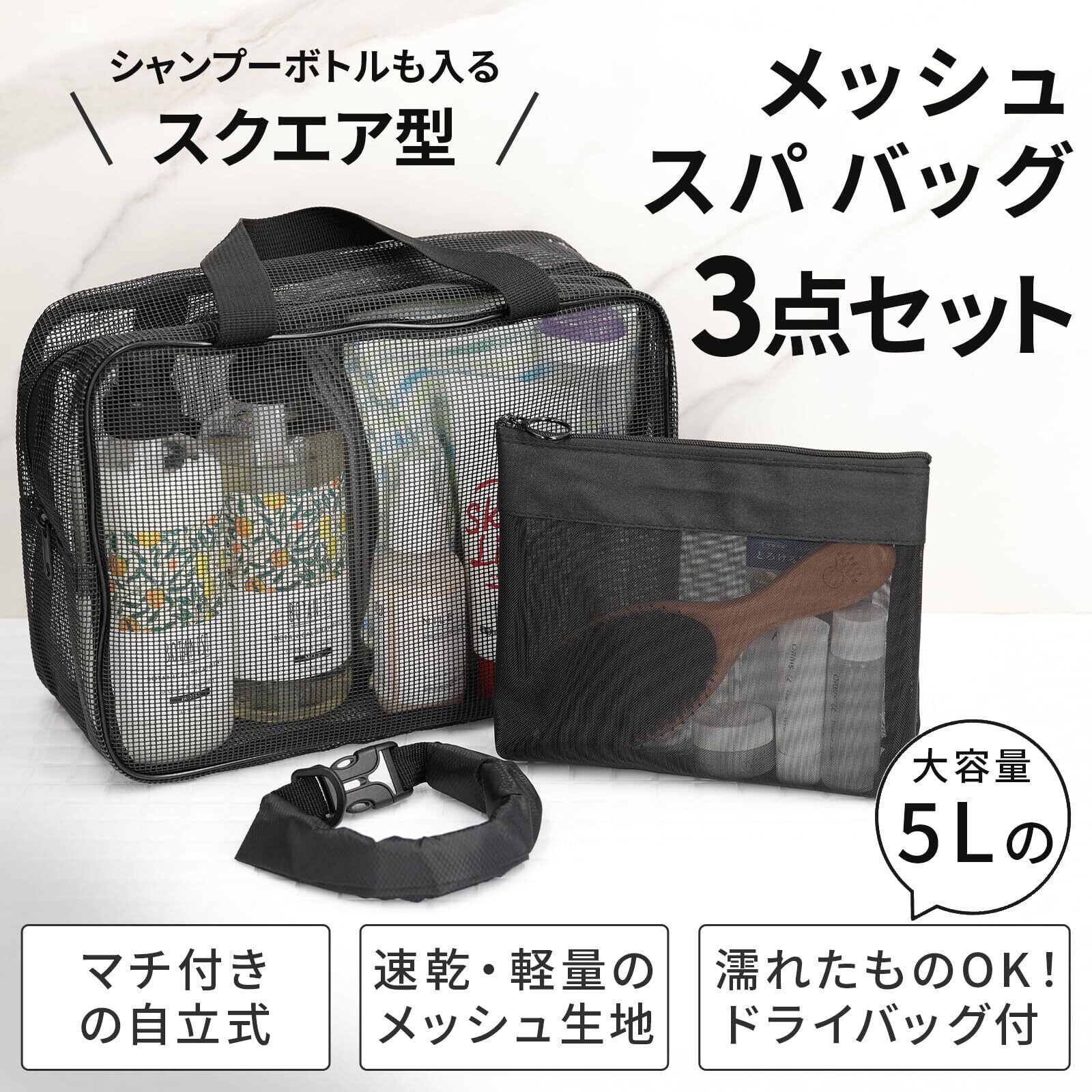[all de blue] スパバッグ 温泉バッグ ドライバッグ ポーチ付き メッシュ サウナ 銭湯 お風呂バッグ