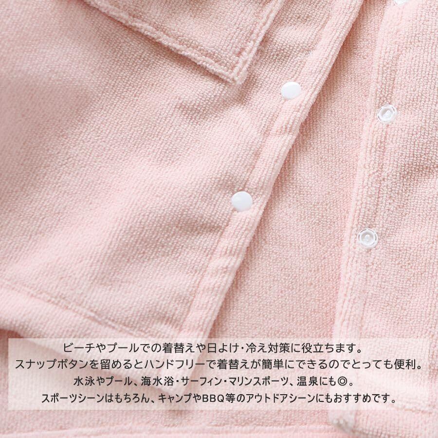 タオルポンチョ サウナグッズ スポーツタオル バスローブ サーフィンポンチョ ルームウェア 着替えポンチョ 防寒 男女兼用 子供用ポンチョ レデイースポンチョSW23-10 (ピンク, L/140-150CM)