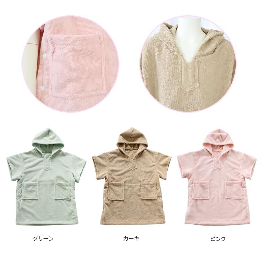 子供用のポンチョもご用意しており、可愛らしいデザインでお子様にも喜ばれます。お風呂上がりや海遊びの後にサッと羽織ることができ、子供たちも大好きなアイテムになること間違いなしです。お子様の成長にも対応したサイズ展開があるので、長く愛用していただけます。