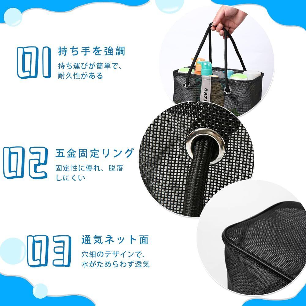 【優れた通気性】メッシュデザインのバッグは、通気性が良く、水切れが速く、速乾性に優れています。水が溜まりにくく、カビや臭いを防ぐため、長期間清潔に使用できます。